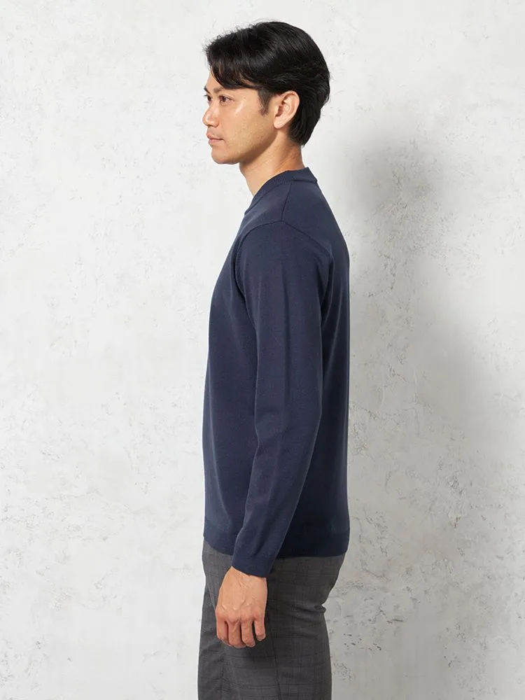 【ウォッシャブル】ニットVネックセーター放電抗ピリング無地天竺長袖リッケンバッカー秋冬