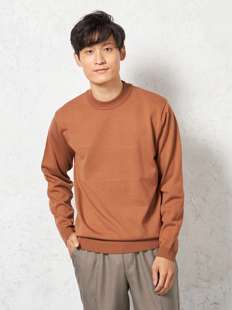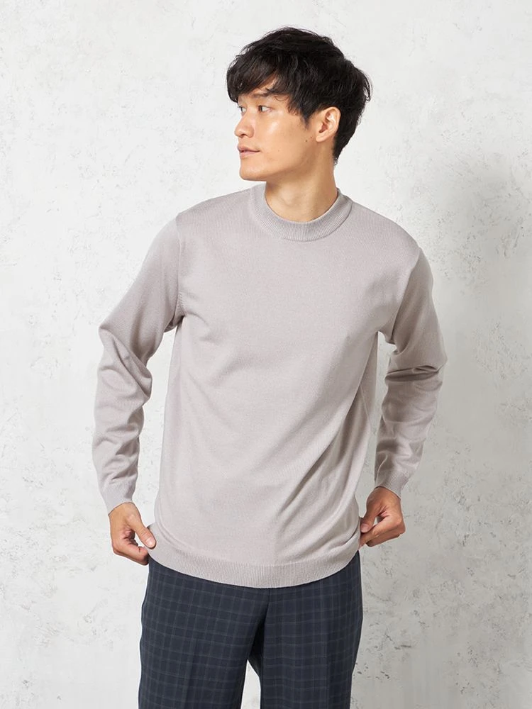 【KATHARINEEHAMNETT-キャサリン・イー・ハムネット-】モックネック長袖ニット吸湿発熱ストレッチウォッシャブル無地秋冬