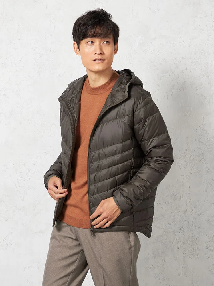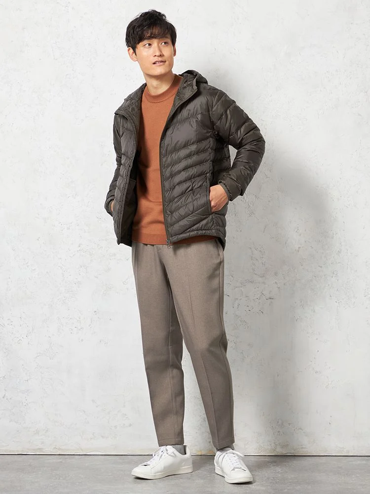 落ち着いたトーンの色展開でコーディネートをスタイリッシュにまとめるダウンブルゾン。