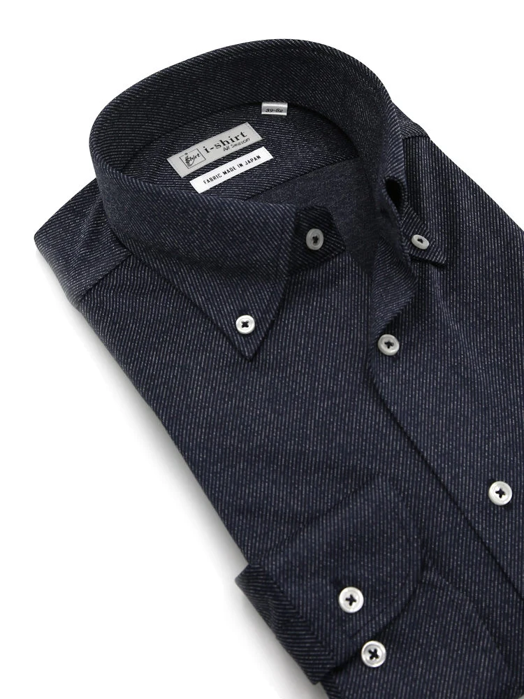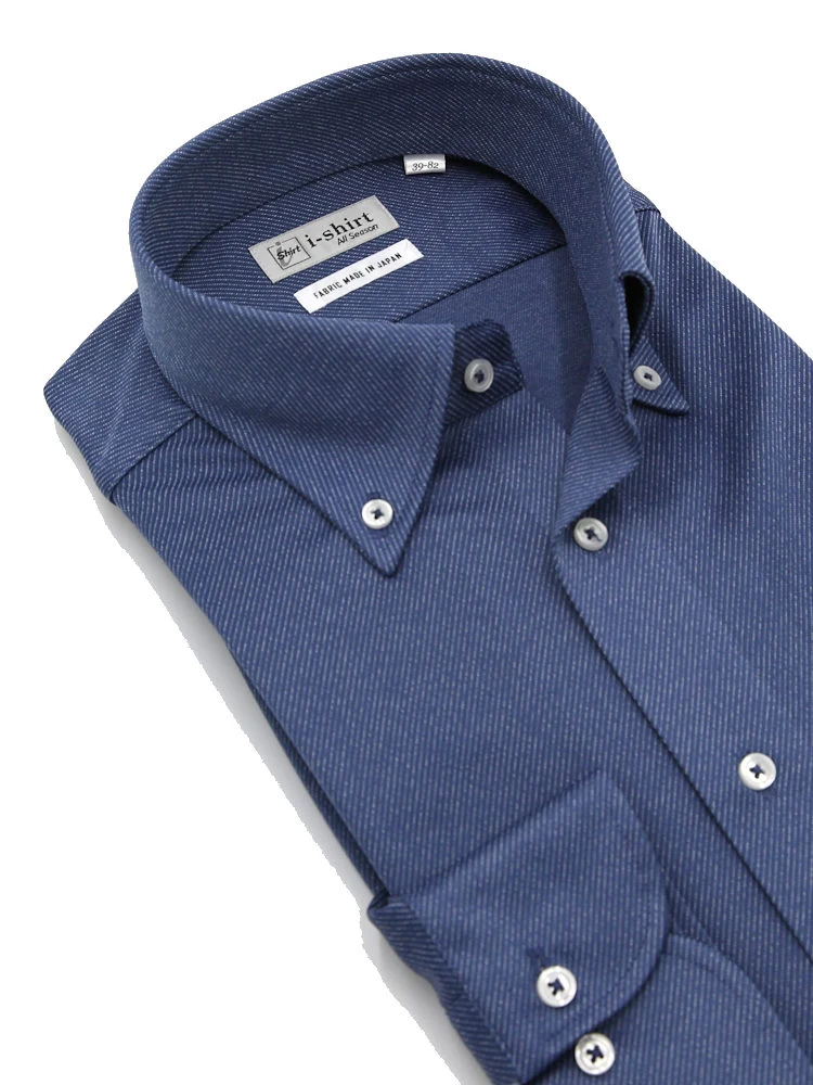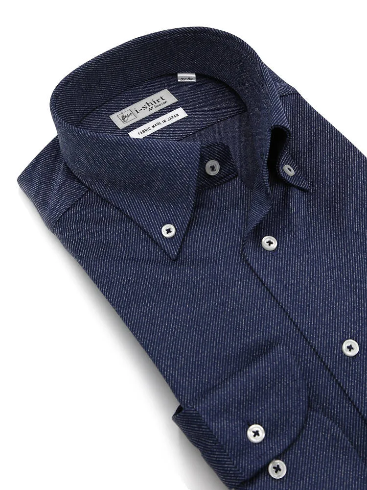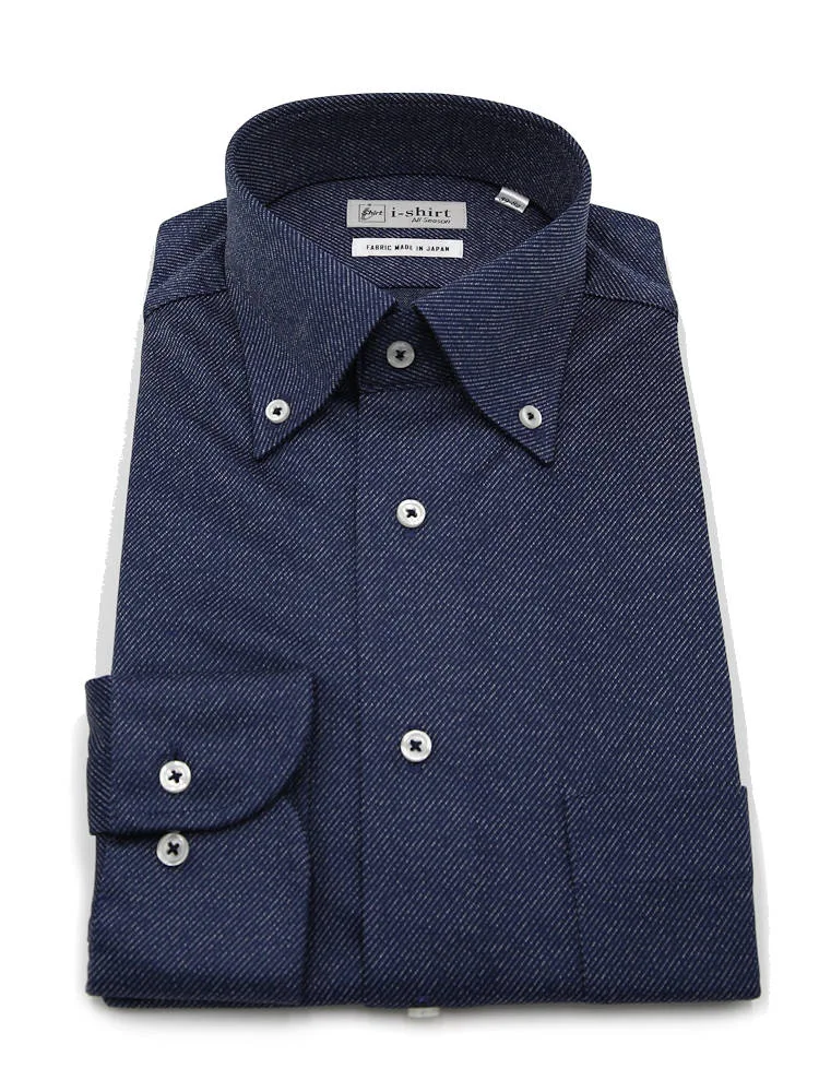 【完全ノーアイロン】長袖 アイシャツ ボタンダウン デニム調 ワイシャツ i-shirt 通年(ネイビー)
