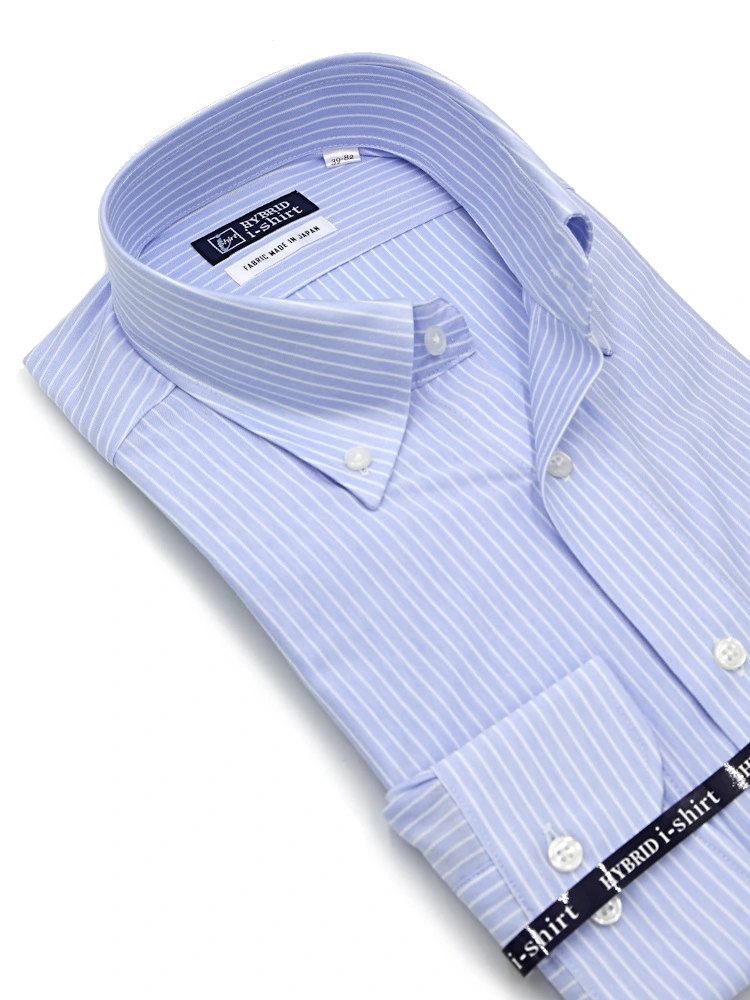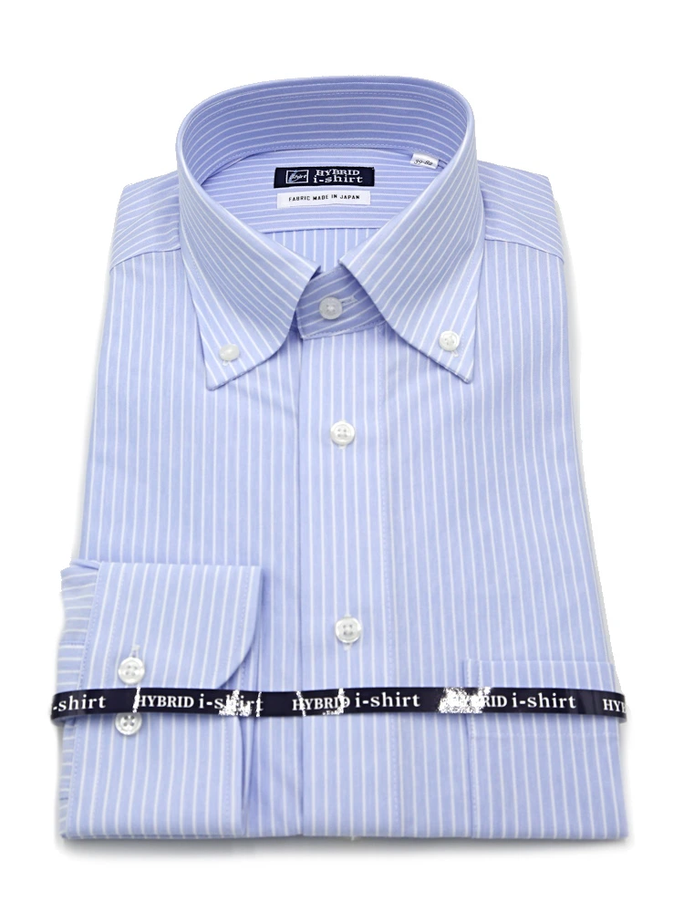 【ハイブリッドアイシャツ】長袖ワイシャツボタンダウン綿混素材形態安定ピンストライプi-shirt通年
