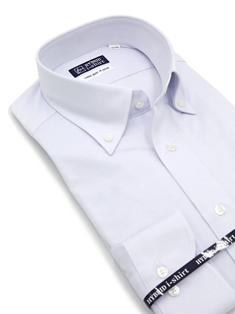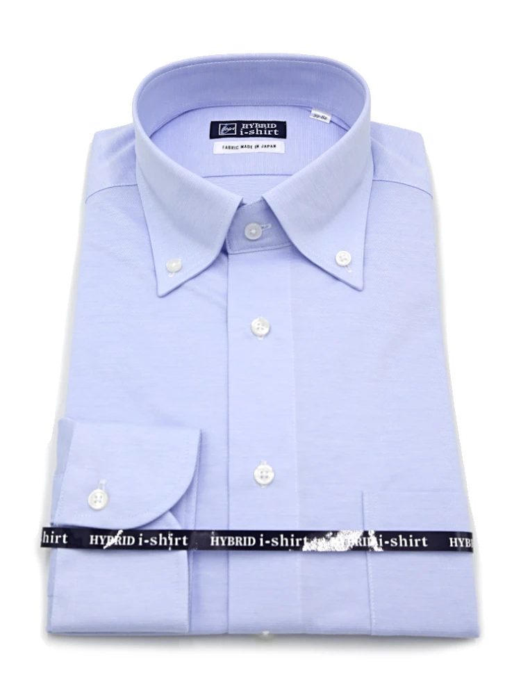 【ハイブリッドアイシャツ】長袖ワイシャツボタンダウン綿混素材形態安定無地i-shirt通年