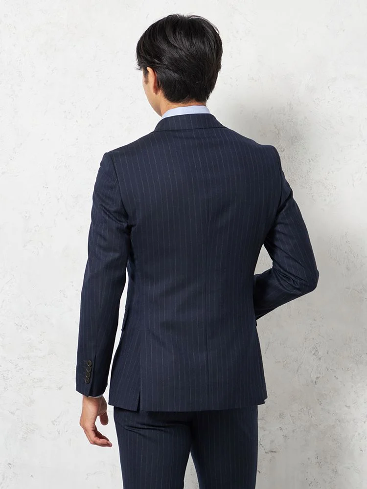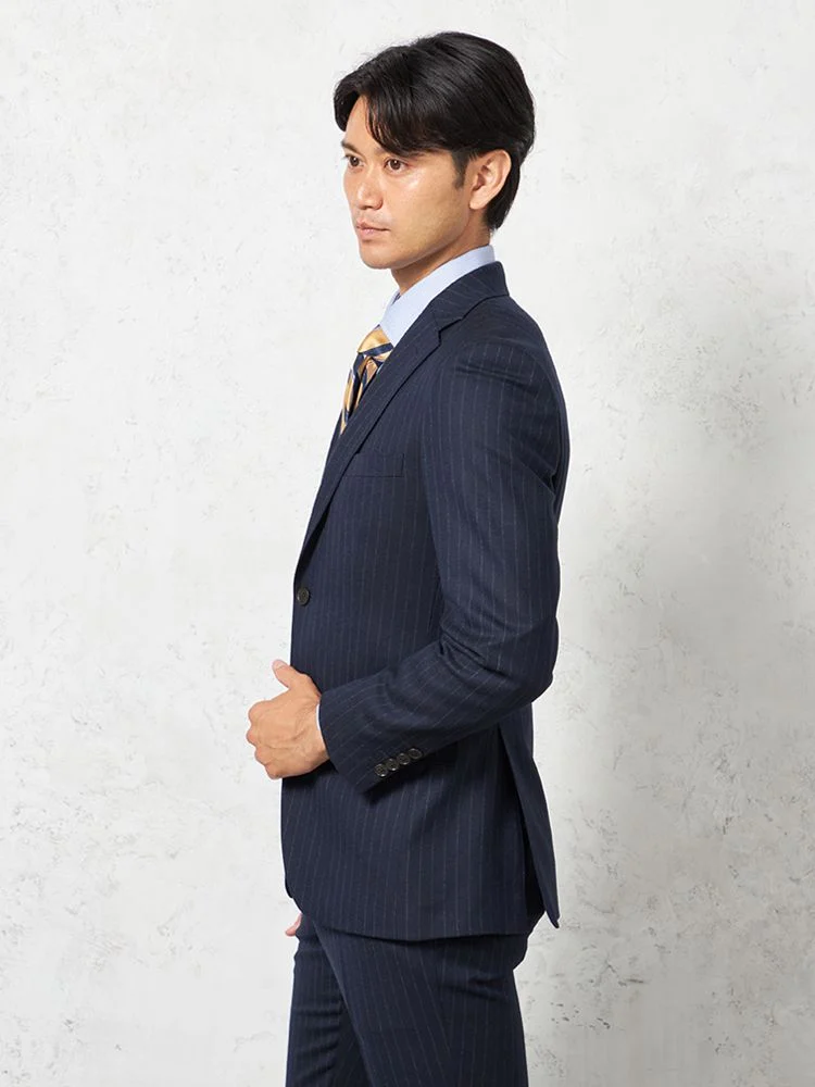 【即納】スーツ2つボタン【WEB限定】上下ウォッシャブルネイビーストライプ