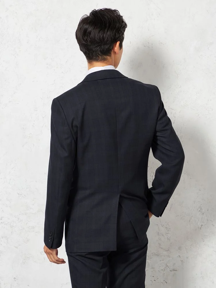 【即納】スーツ2つボタン【WEB限定】上下ウォッシャブルネイビーチェック