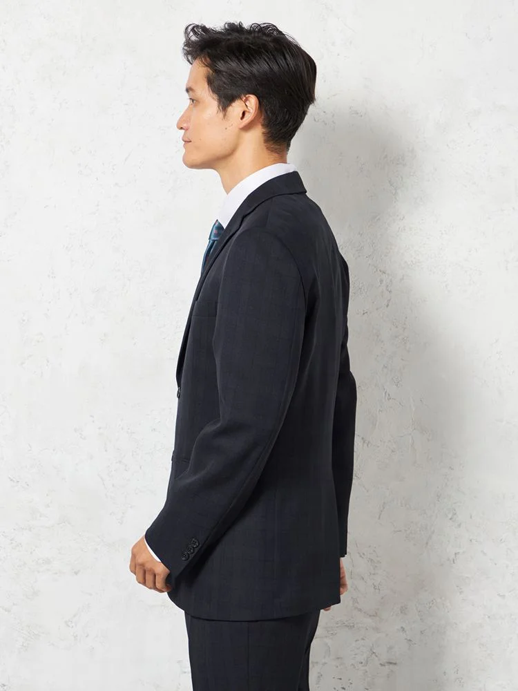 切り込みが1本のセンターベントデザインです。細身でスッキリとしたシルエットが特徴で、快適な着心地を提供します