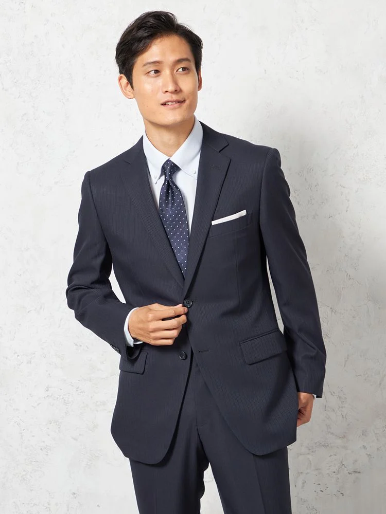 【即納】スーツ2つボタン【WEB限定】上下ウォッシャブルネイビーシャドウストライプ