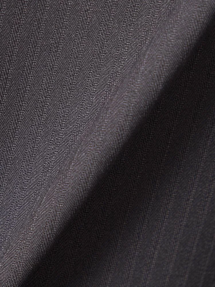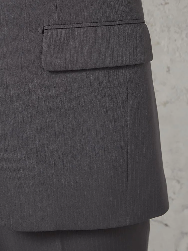 落ち着いたグレーにさりげないピンストライプ柄で上品な印象の一着。