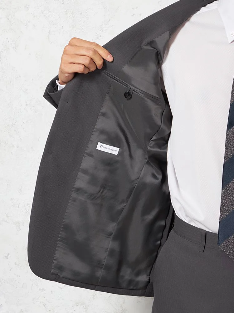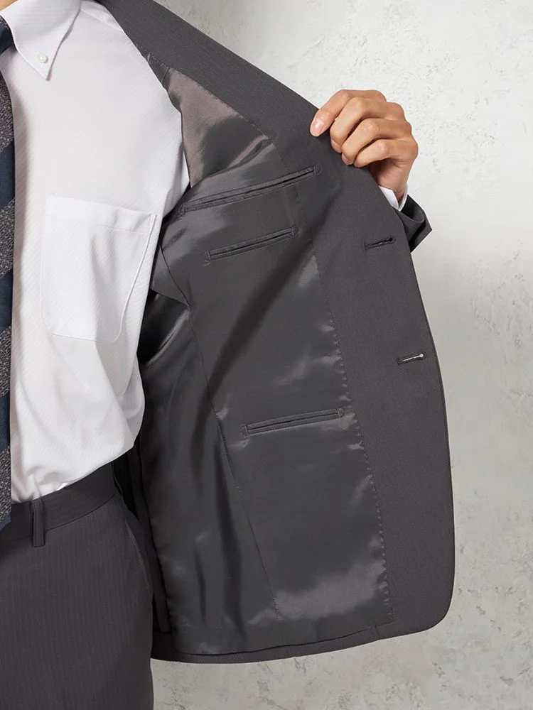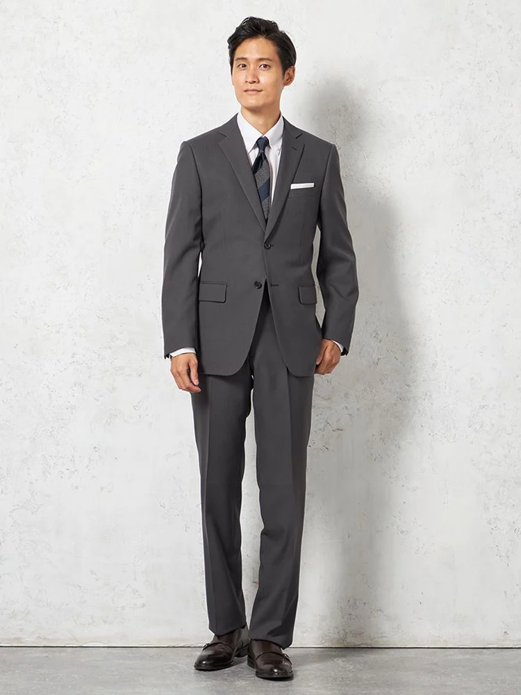 【即納】スーツ2つボタン【WEB限定】上下ウォッシャブルグレーストライプ