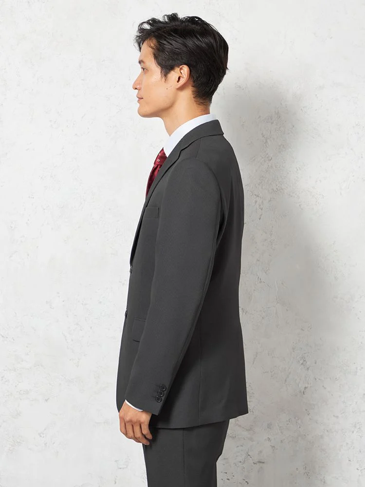 切り込みが1本のセンターベントデザインです。細身でスッキリとしたシルエットが特徴で、快適な着心地を提供します