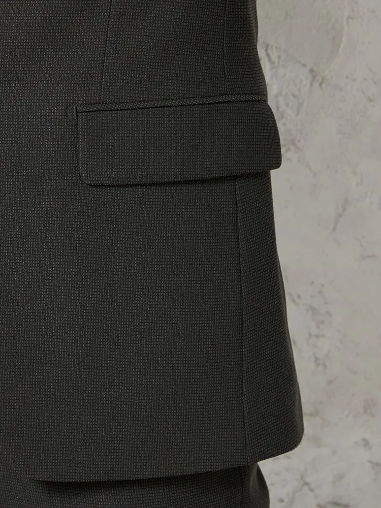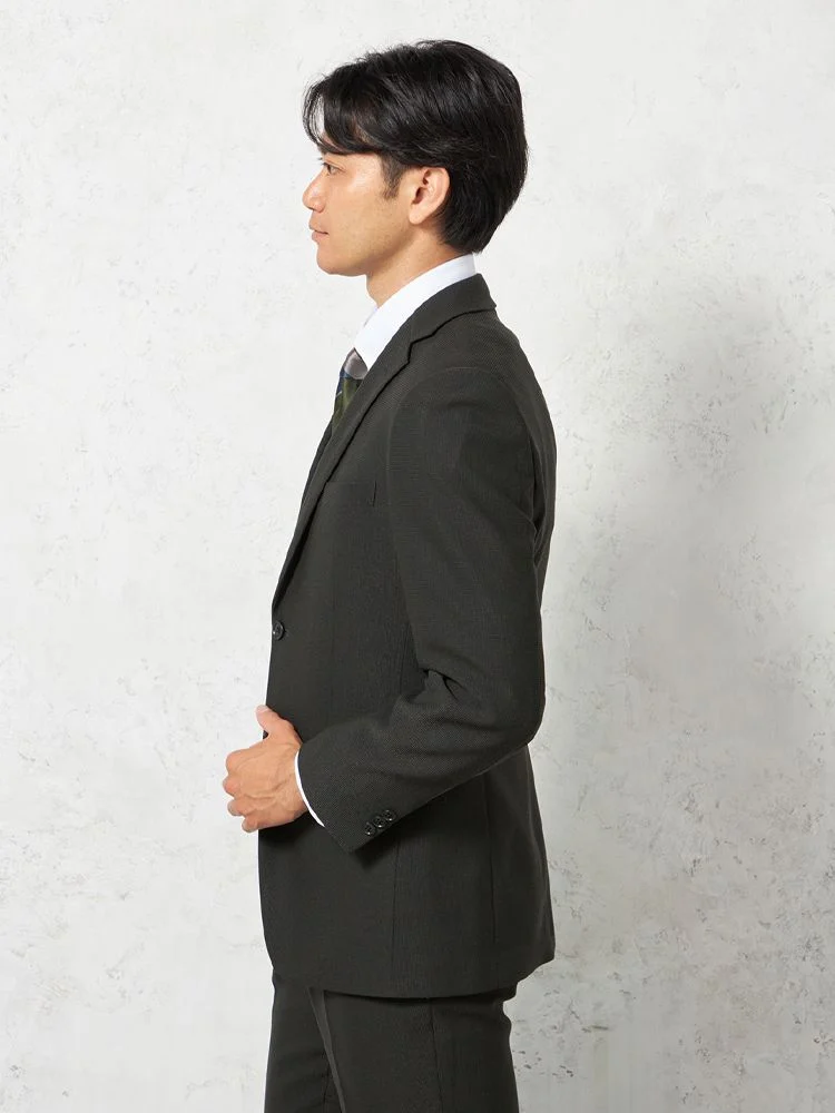 切り込みが1本のセンターベントデザインです。細身でスッキリとしたシルエットが特徴で、快適な着心地を提供します