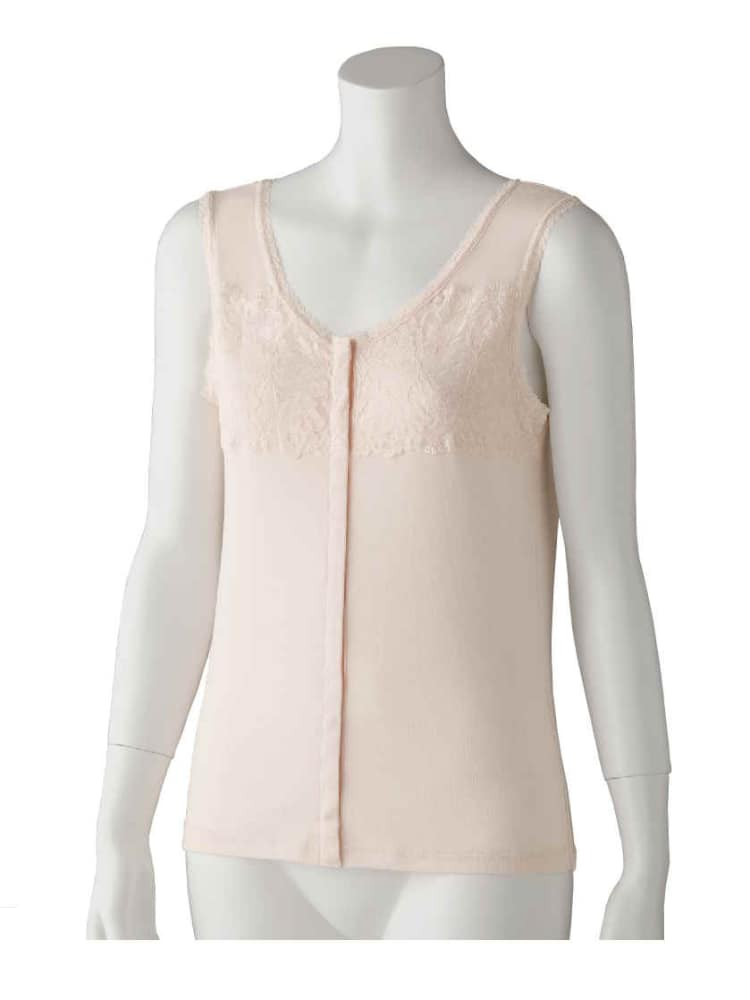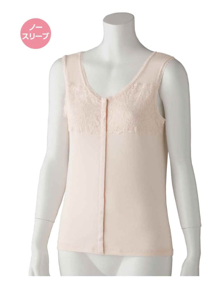 レディース フロントレースノースリーブホックインナー/婦人用/介護/前開き/肌着/綿100%/敬老の日/ギフト/プレゼント 【CF】(L.ピンク)