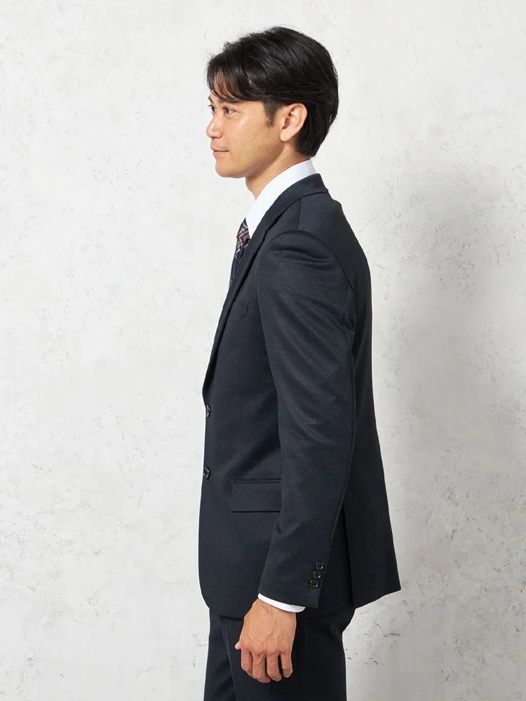 切り込みが2本のサイドベンツ仕様のアイテムです。クラシックでエレガントな印象を与えます。