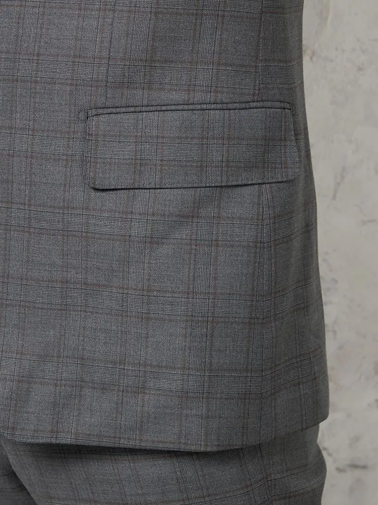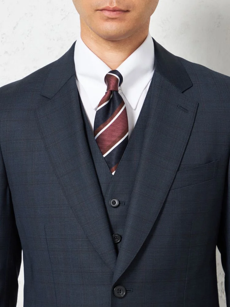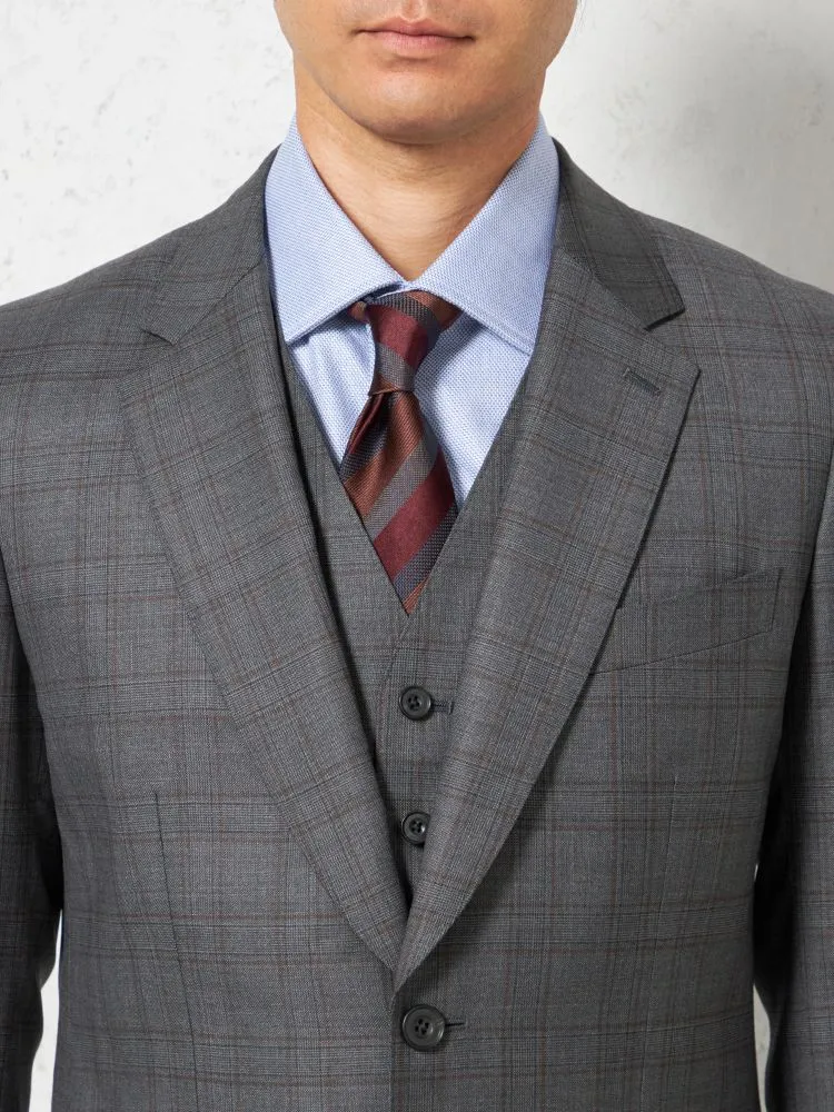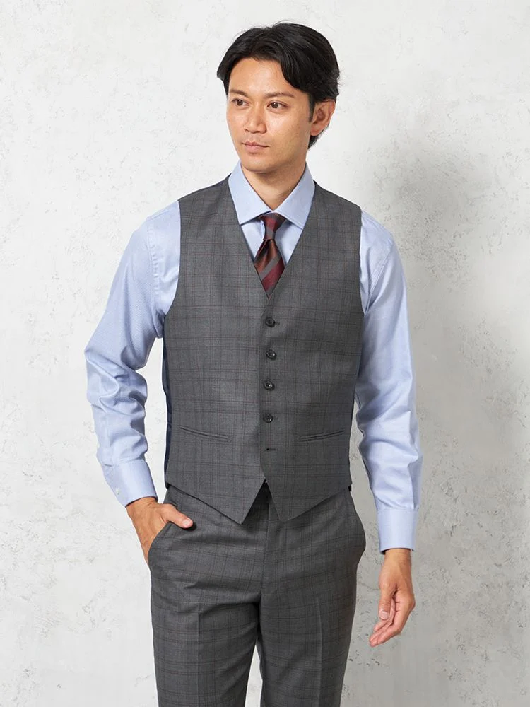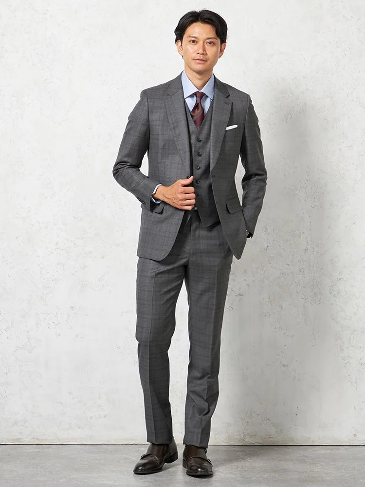 着こなしを格調高くクラシカルに映し出す、格子柄のスリーピーススーツ。