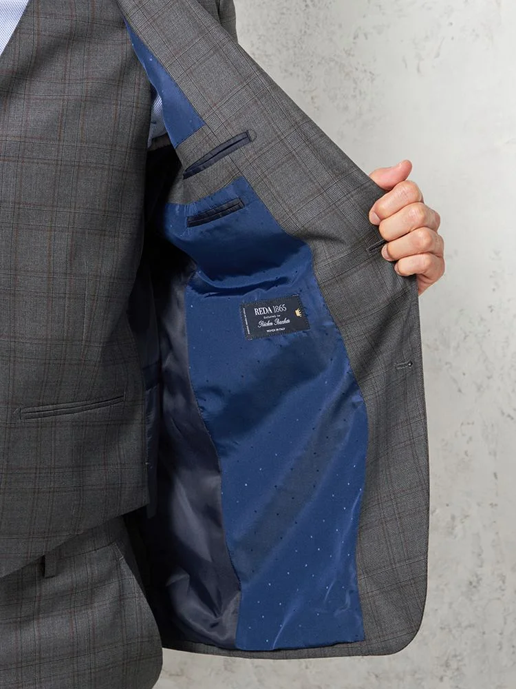 【ウール100%】スリーピーススーツ2つボタン【REDA】イタリアインポート素材チェックRUCKENBACCHAR秋冬