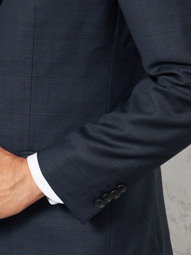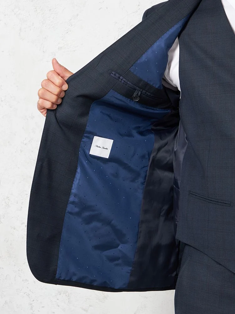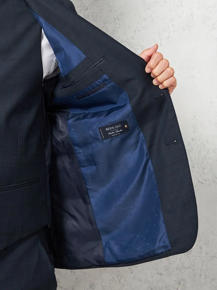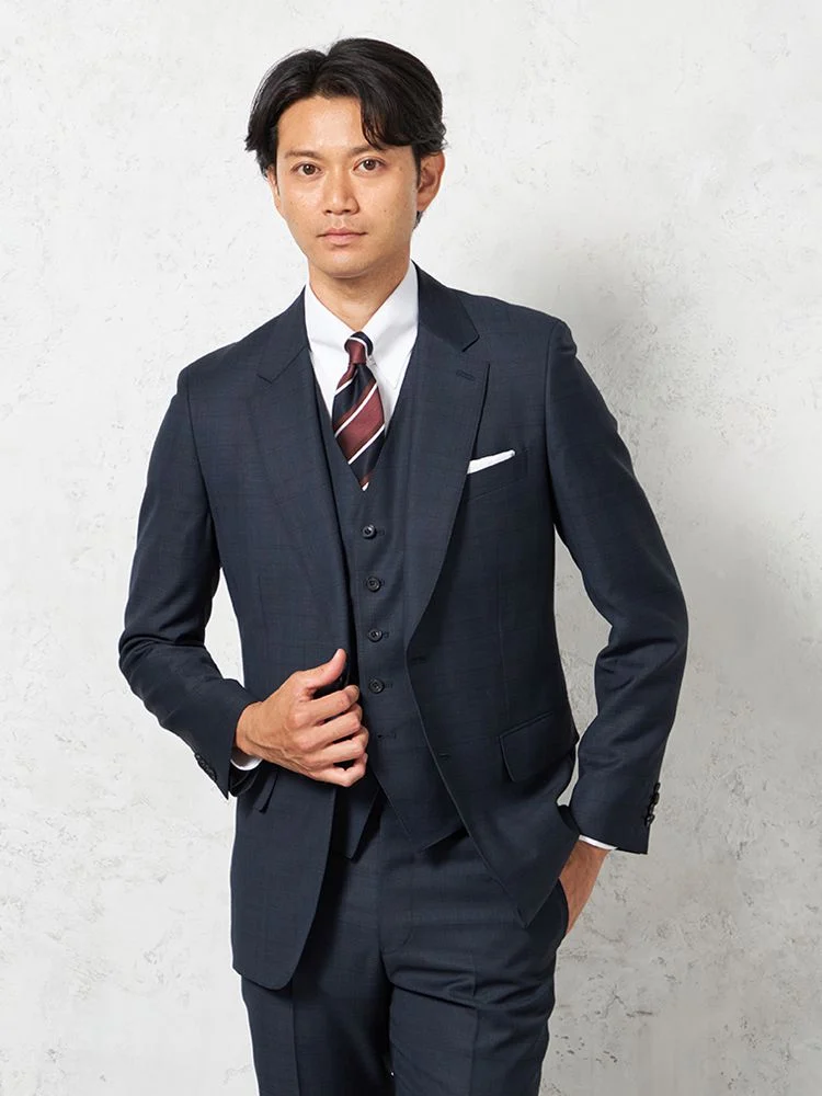 【ウール100%】スリーピーススーツ 2つボタン【REDA】イタリアインポート素材 ウインドペン リッケンバッカー 秋冬(ネイビー)