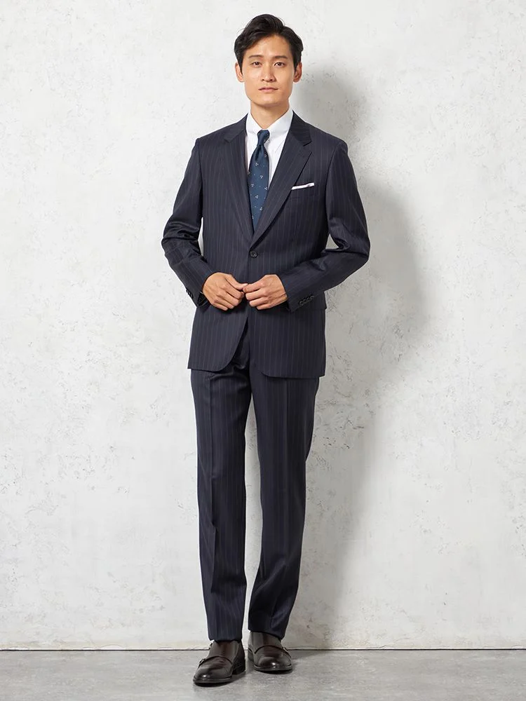 【ウール100%】スーツ2つボタン尾州素材使用ストライプSTOVEL&MASON秋冬