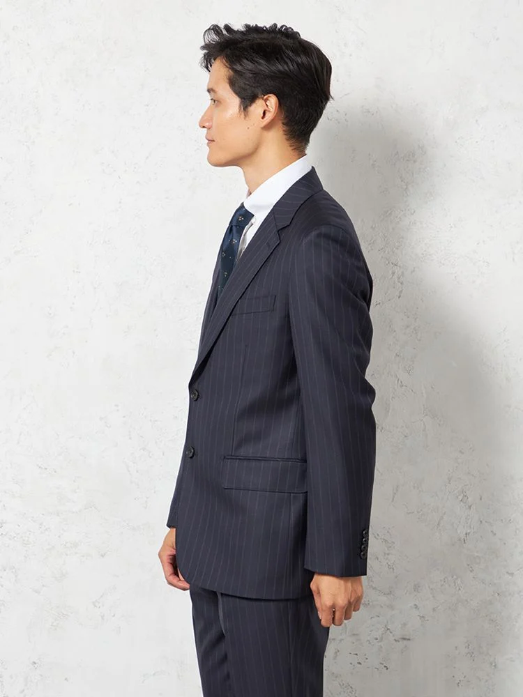 切り込みが1本のセンターベントデザインです。細身でスッキリとしたシルエットが特徴で、快適な着心地を提供します