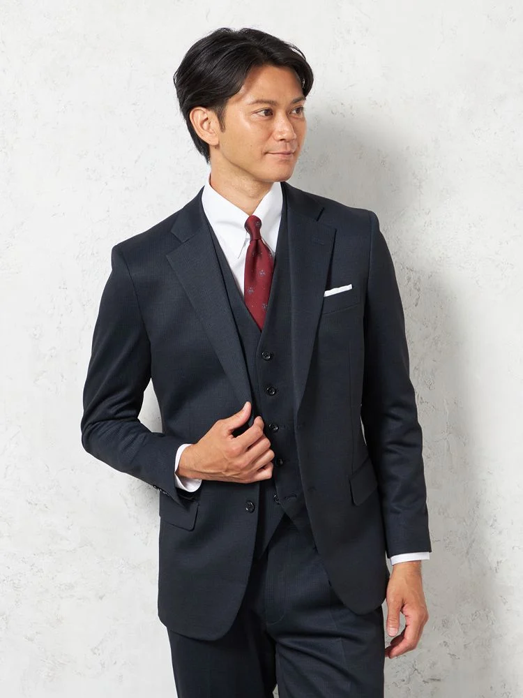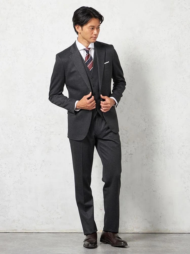 【上下ウォッシャブル】スリーピーススーツ 2つボタン【i-Suit-アイスーツ-】ストレッチ ニット素材 織柄無地 リッケンバッカー 秋冬