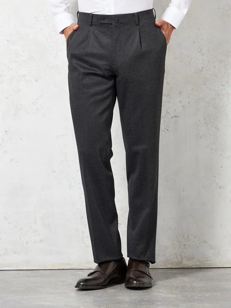 スマートなシルエットながら、ワンタック仕様で腰まわりも楽な着心地に。