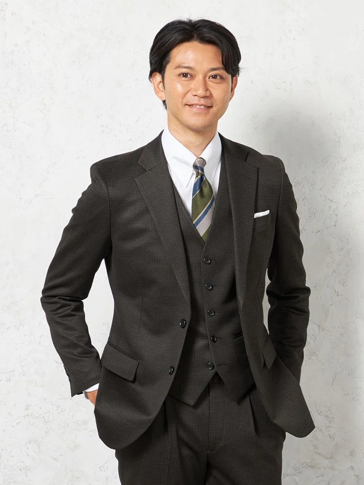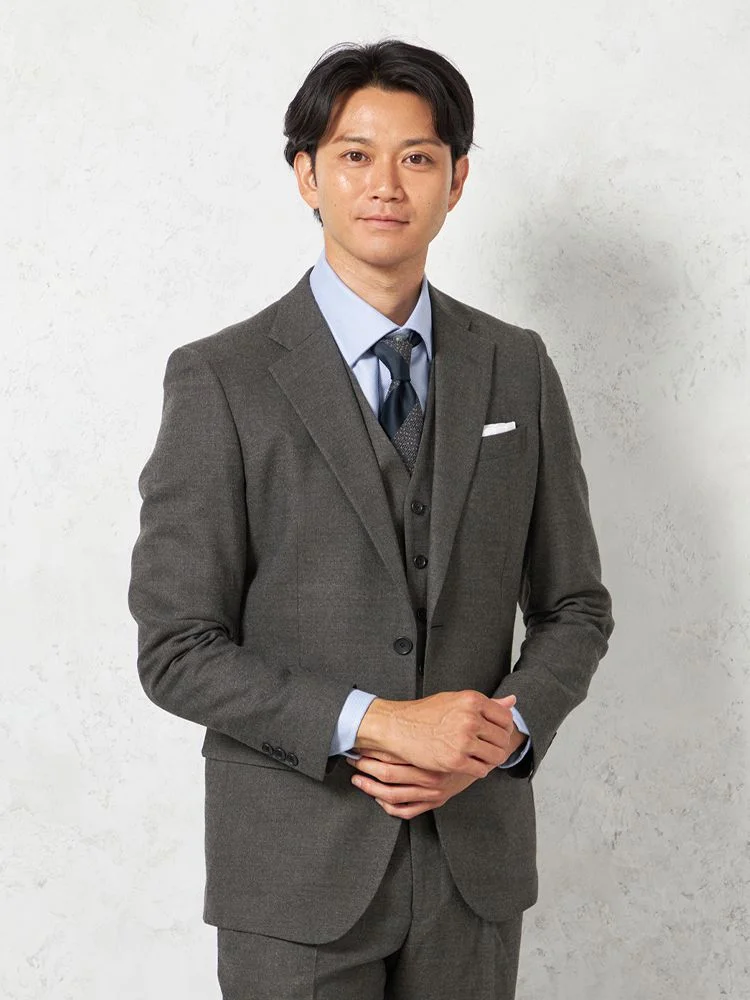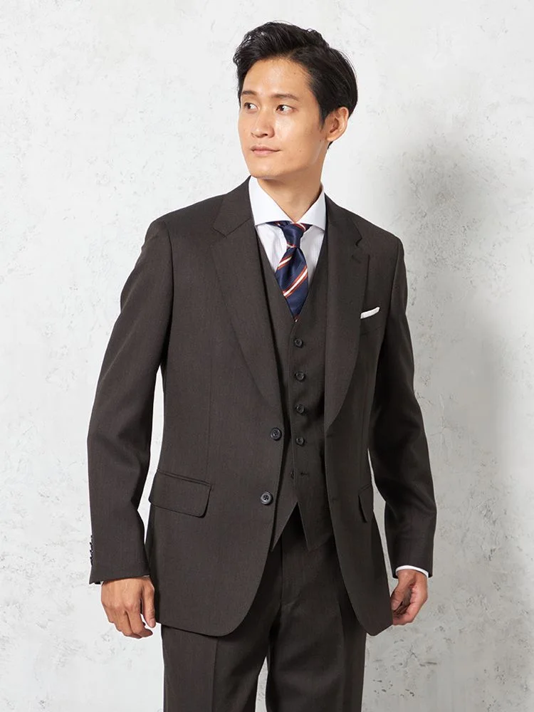 ジャケット、パンツ、ベストの3点セットで、スーツ全体を簡単にコーディネートできます。ビジネスやフォーマルな場面に最適です。