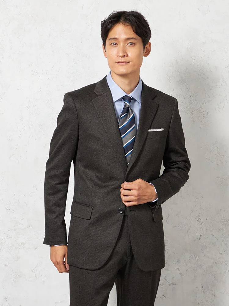 【上下ウォッシャブル】スーツ2つボタンニット素材織柄無地リッケンバッカー秋冬