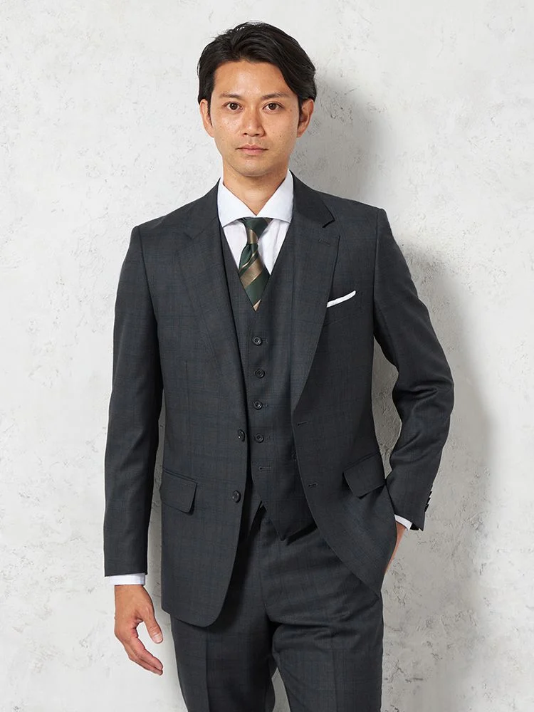 【ウール100%】スリーピーススーツ2つボタンSUPER130s裏地キュプラ千鳥格子S&MBLUELABEL