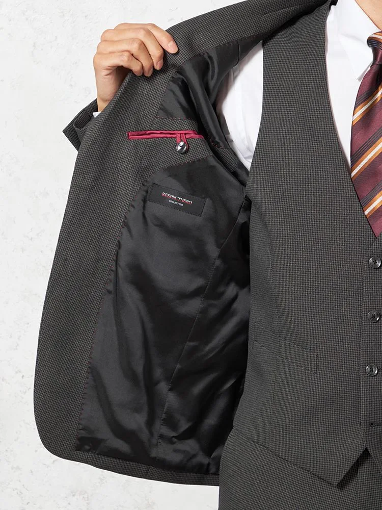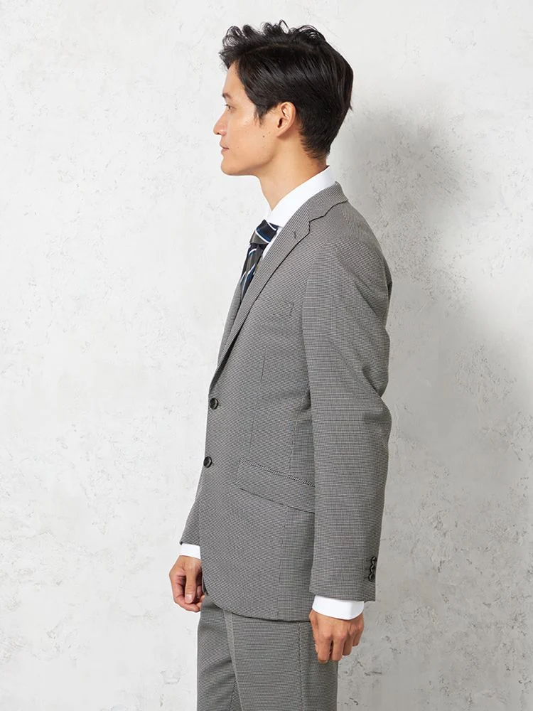 【上下ウォッシャブル】スリーピーススーツ2つボタンウール混ストレッチ・防しわ千鳥格子nero秋冬