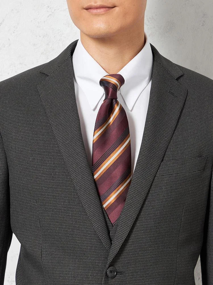 【即納】スリーピーススーツ2つボタン【WEB限定】ウールライク小柄ブラウン秋冬