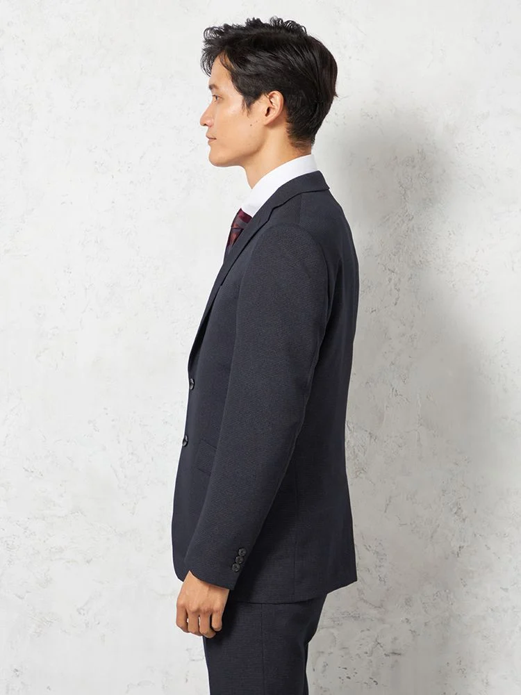 切り込みが1本のセンターベントデザインです。細身でスッキリとしたシルエットが特徴で、快適な着心地を提供します