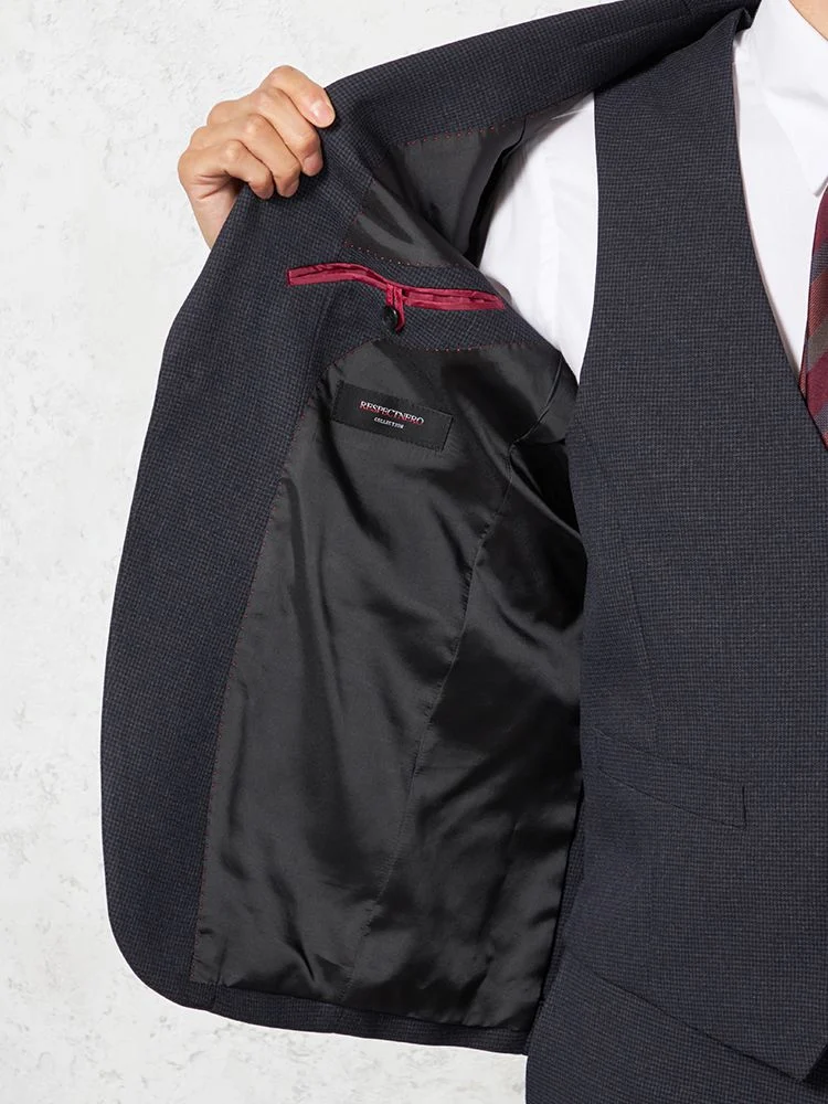 【上下ウォッシャブル】スリーピーススーツ 2つボタン ウールライク 千鳥格子 nero 秋冬(ネイビー)
