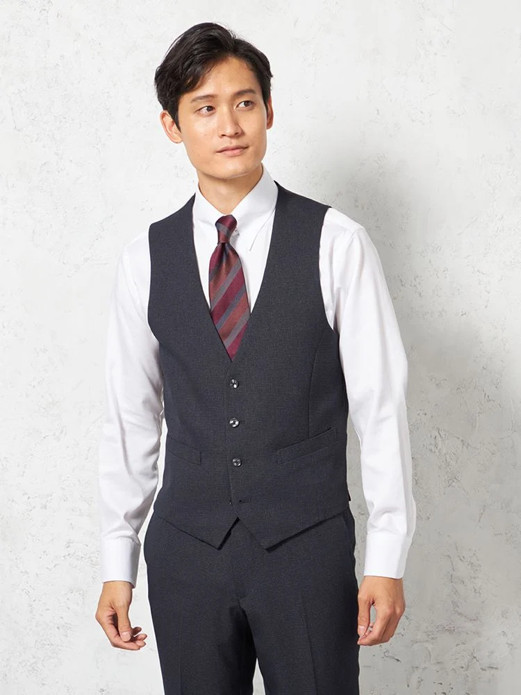ジャケット・ベスト・パンツともにウォッシャブル仕様でシワになりにくく、日頃のお手入れも簡単です。