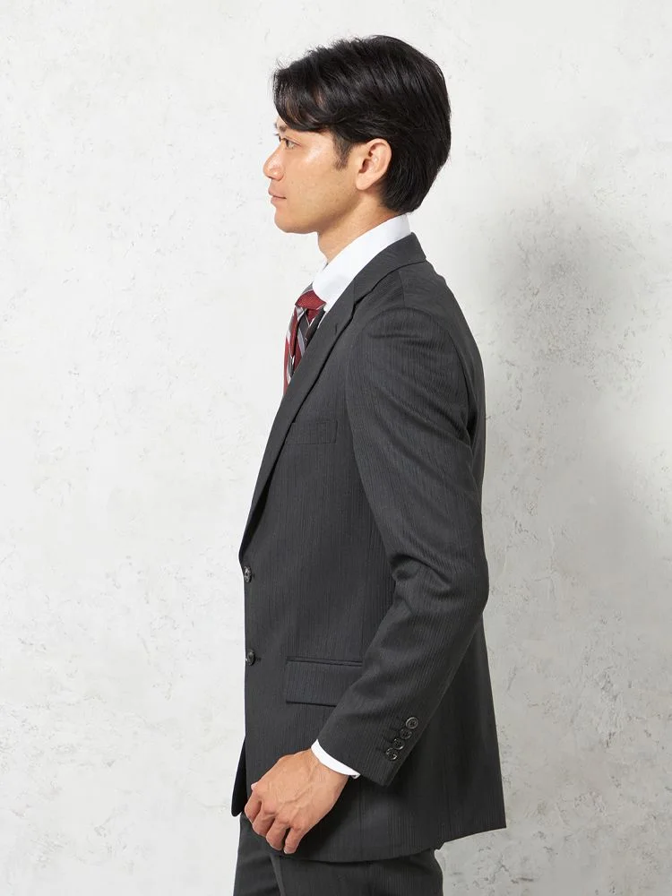 切り込みが1本のセンターベントデザインです。細身でスッキリとしたシルエットが特徴で、快適な着心地を提供します