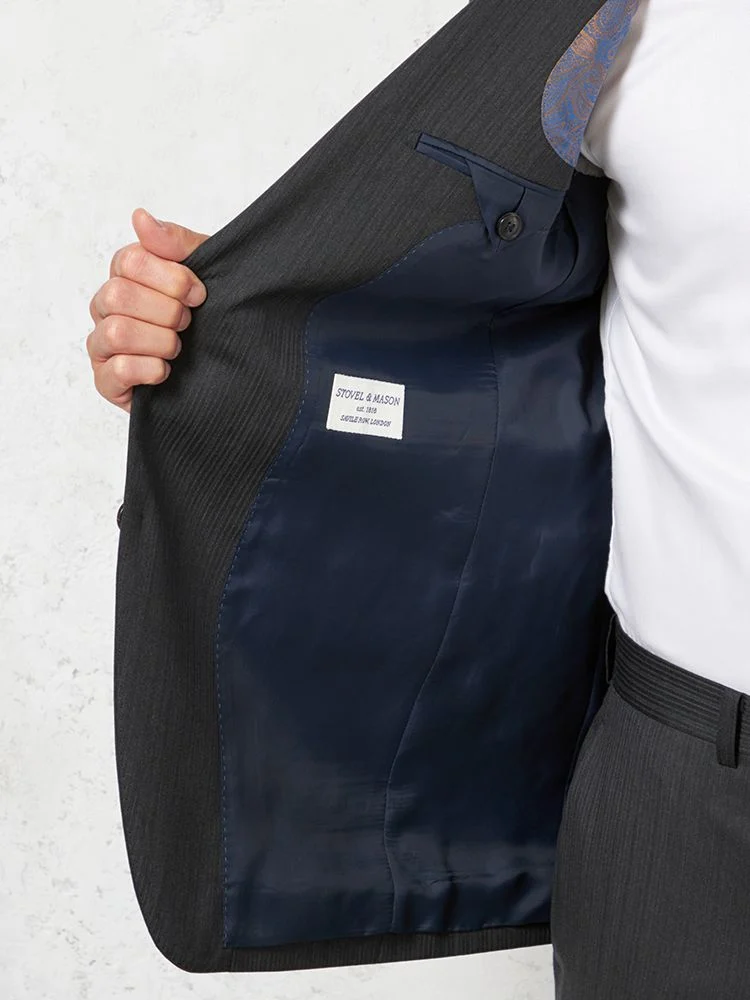 【ウール100%】スーツ2つボタン尾州生地ネイビーシャドウストライプSTOVEL&MASON