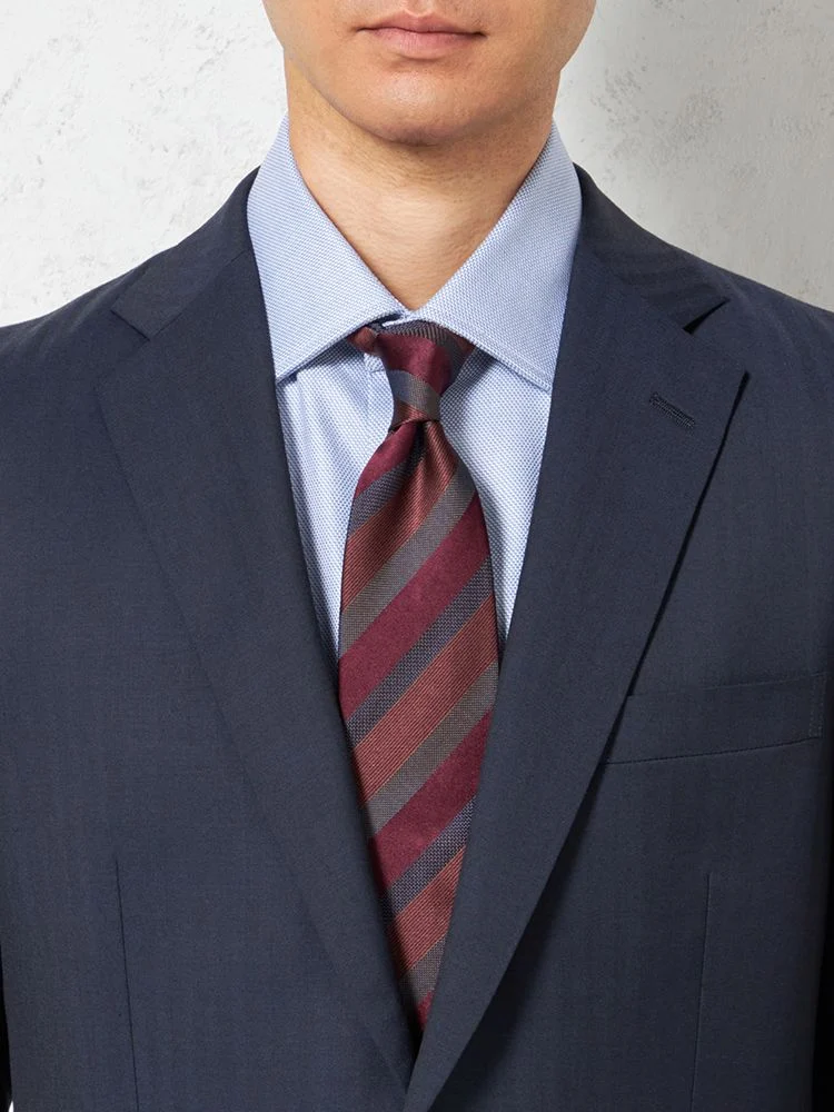 合わせるネクタイによって、シックにも華やかにもコーディネートできます。