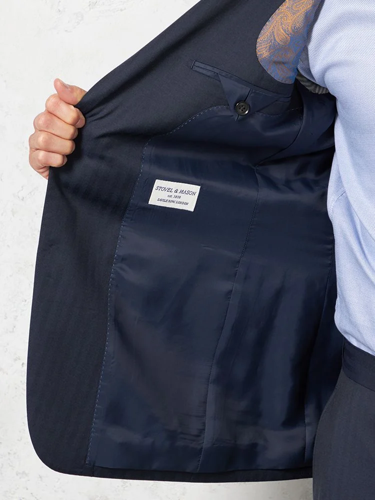 【ウール100%】スーツ2つボタン尾州生地ネイビーシャドウストライプSTOVEL&MASON