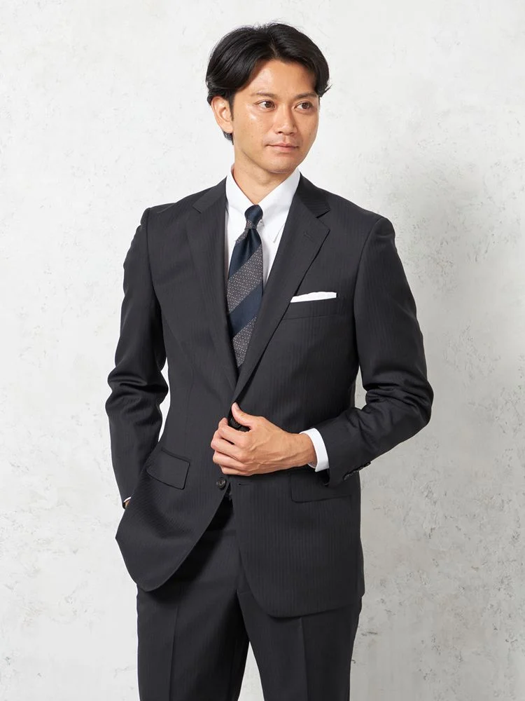 尾州産 SUPER110s素材を使用した高品質な一着。