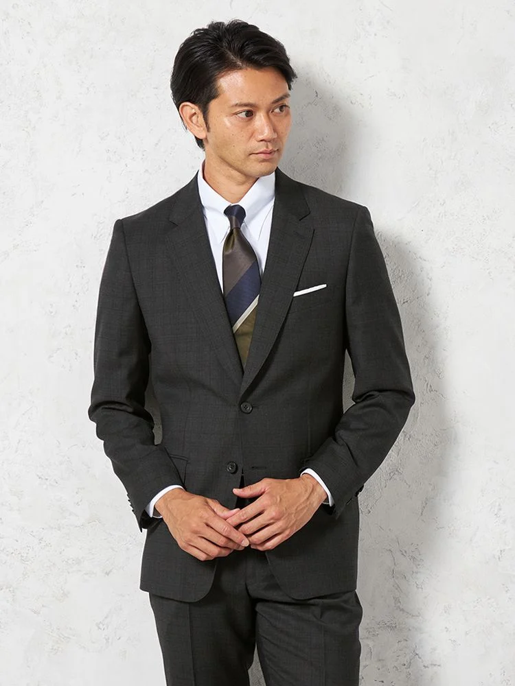 【ウール100%】スーツ2つボタンイタリアインポート素材グレーチェックリッケンバッカー秋冬