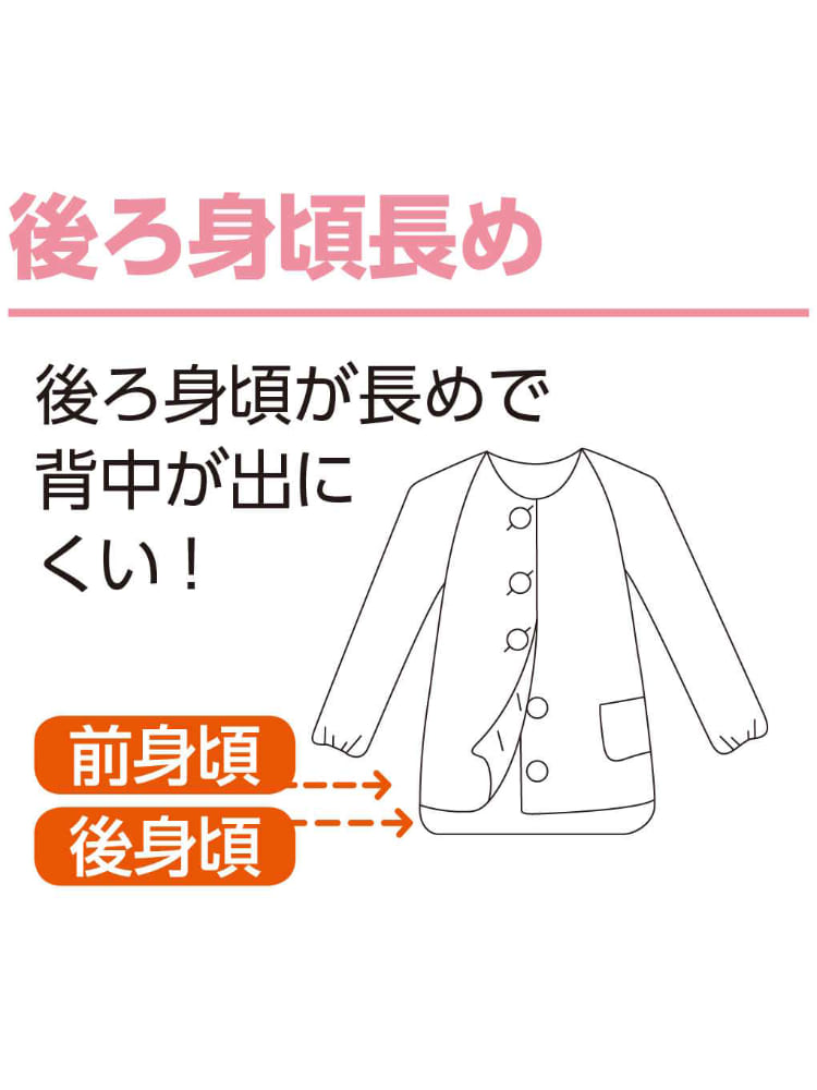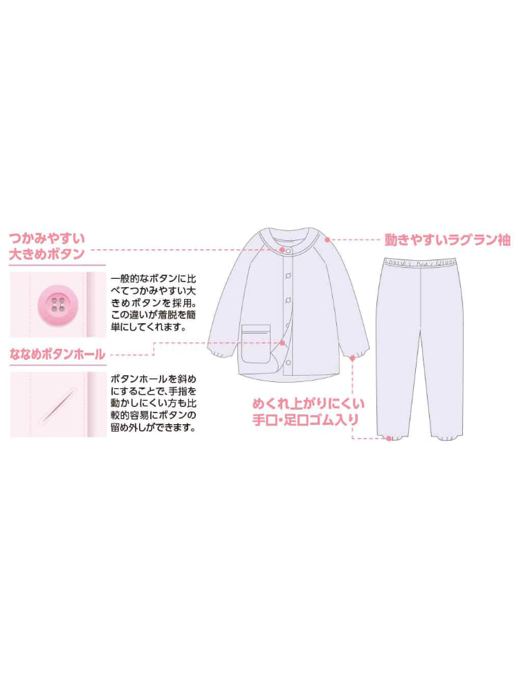 つかみやすい大きめのボタンと斜めボタンホールで留め外しがラクにできます。