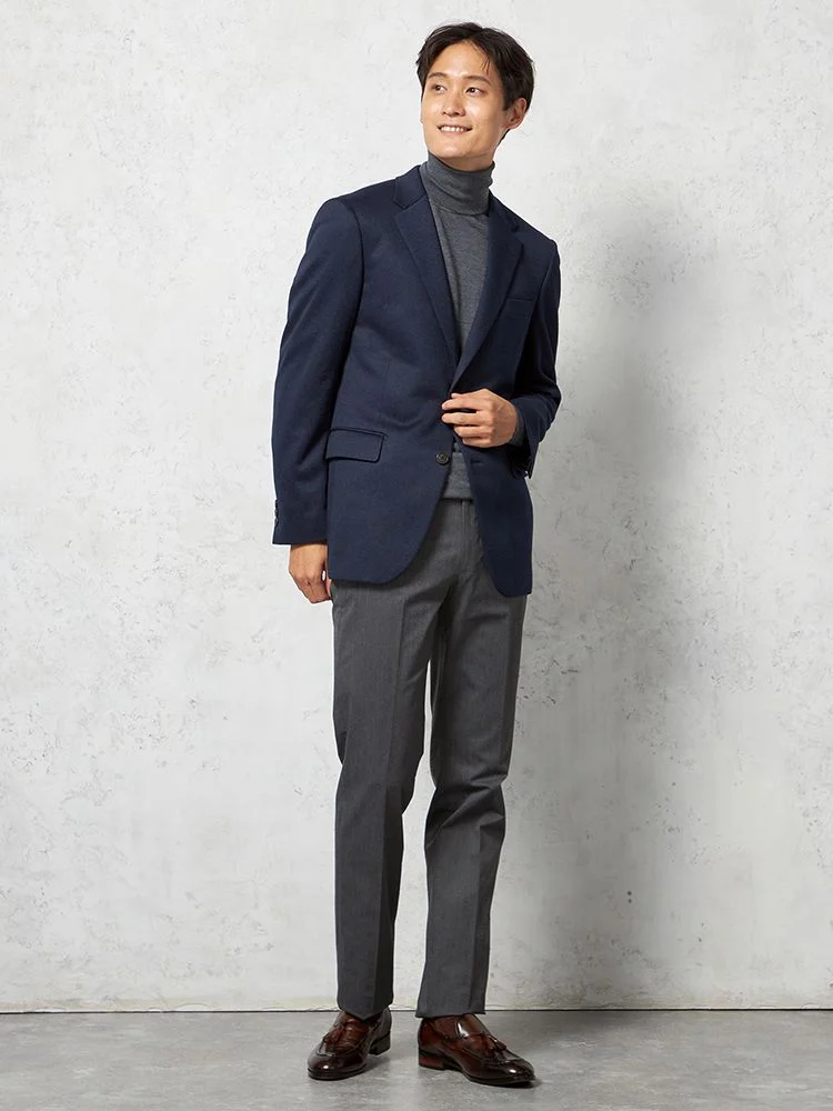 2つボタンのデザインで、クラシックなスタイルを演出。落ち着きと品のあるアイテムです。