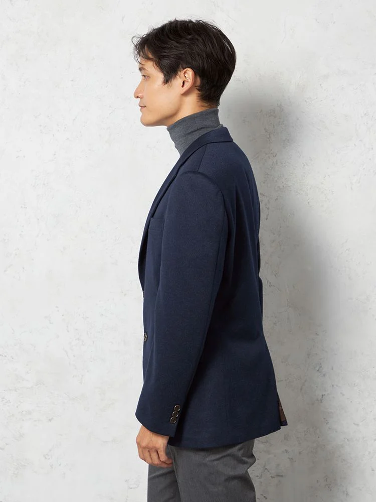 フラノ調なのに強ストレッチで着心地抜群のニットジャケット。