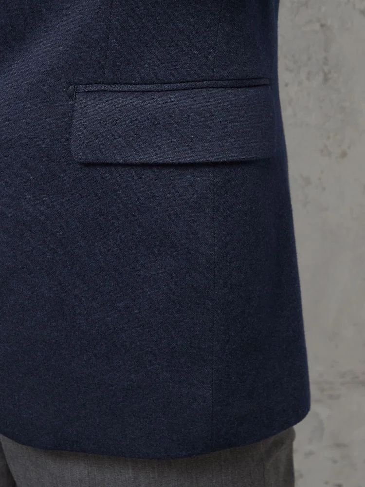切り込みが1本のセンターベントデザインです。細身でスッキリとしたシルエットが特徴で、快適な着心地を提供します