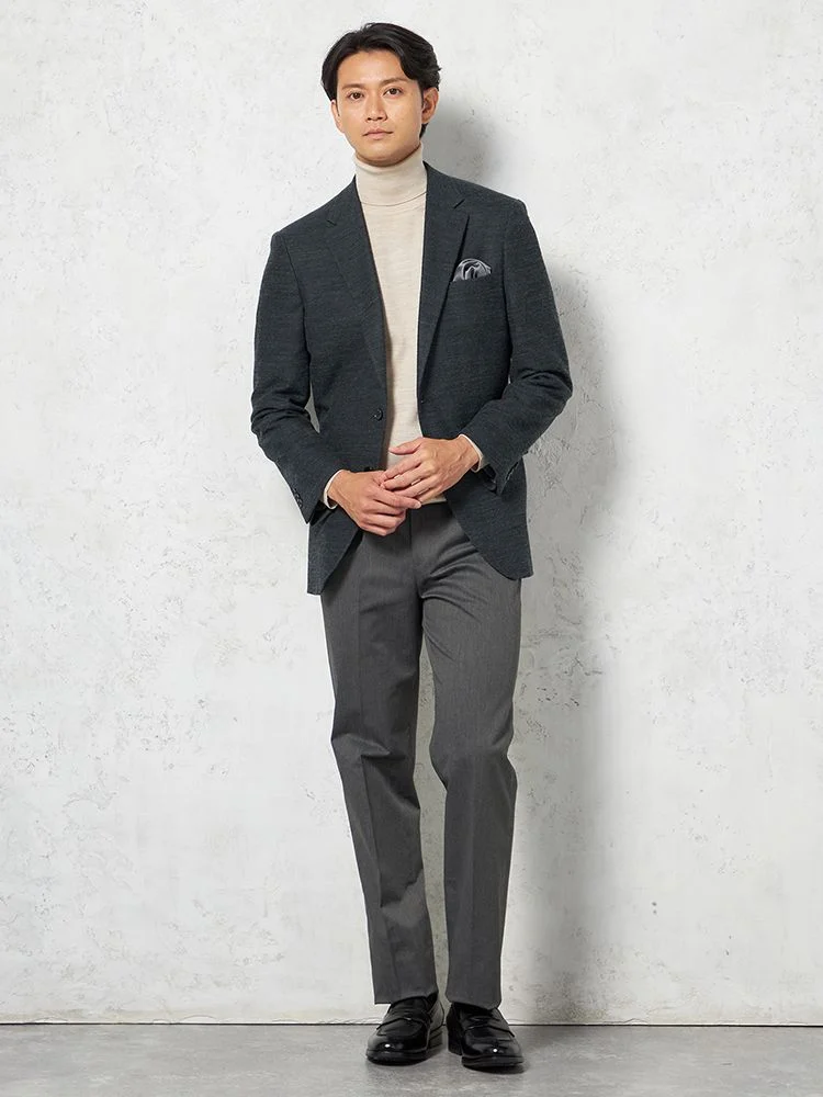 2つボタンのデザインで、クラシックなスタイルを演出。落ち着きと品のあるアイテムです。