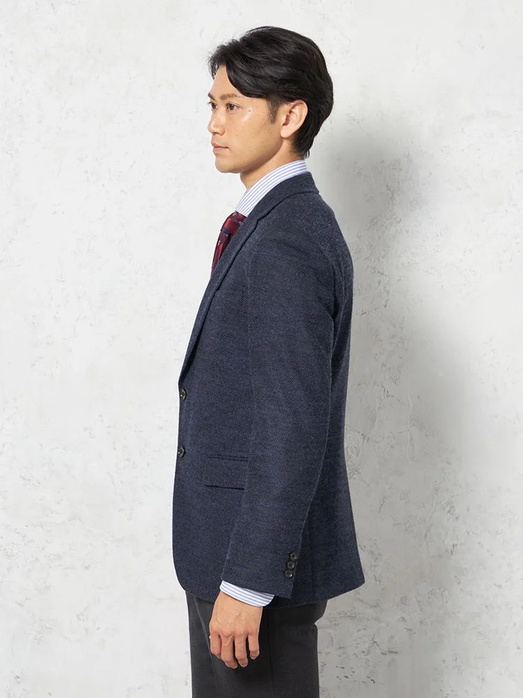 【i-Jacket-アイジャケット-】ジャケット2つボタン尾州ニット素材ウォッシャブルバーズアイリッケンバッカー