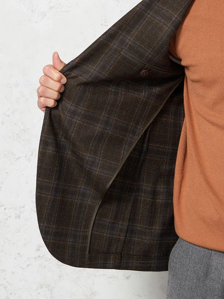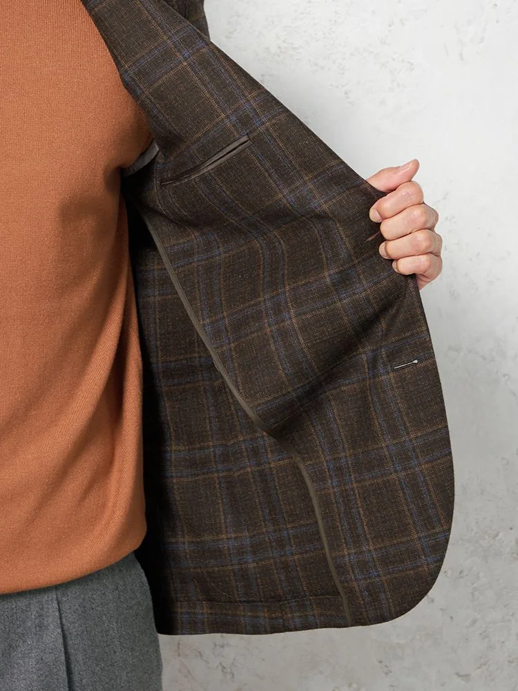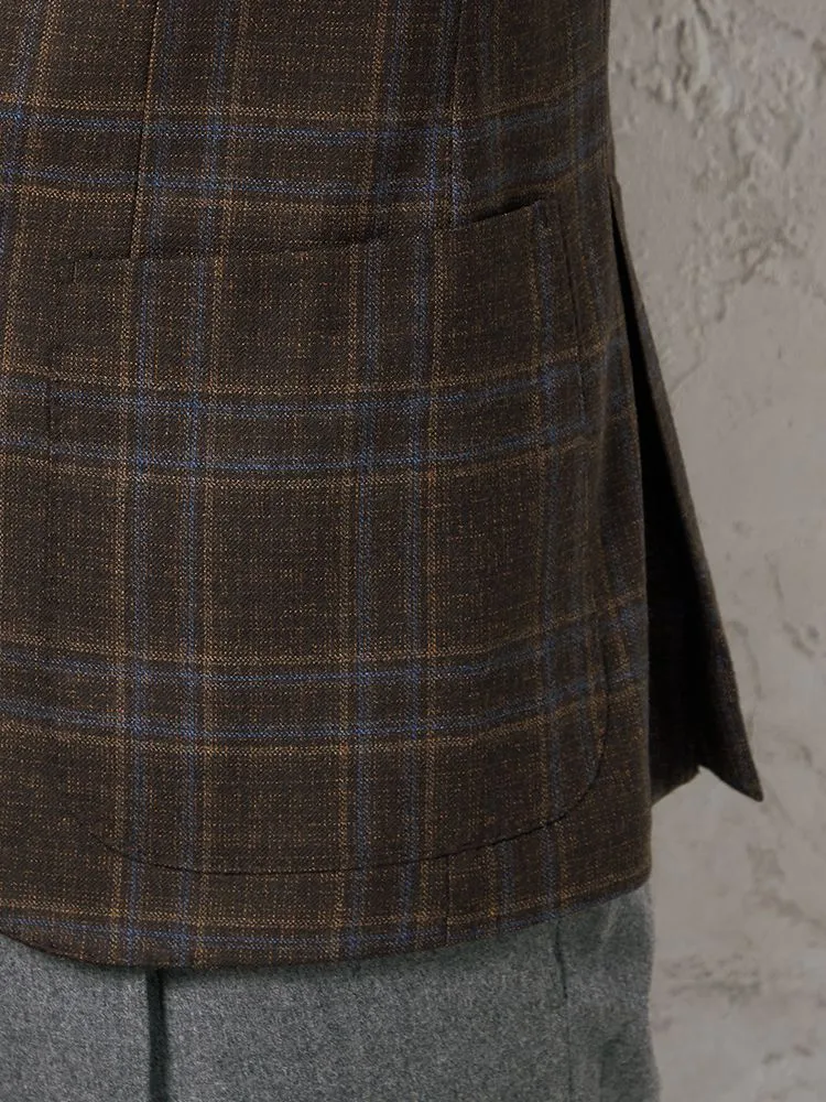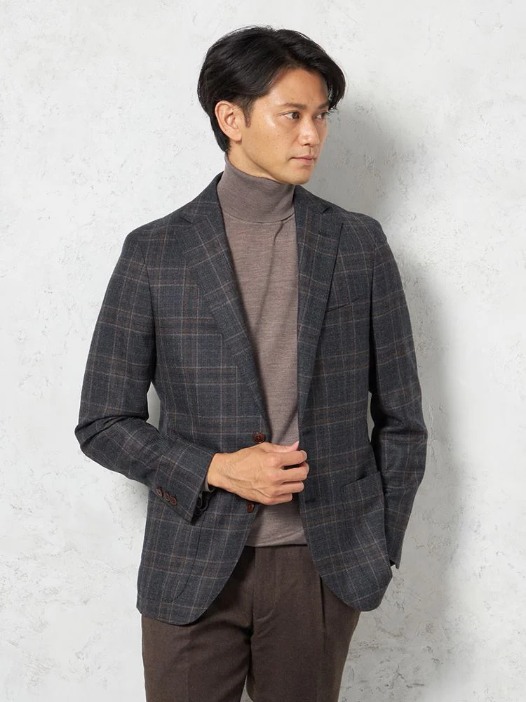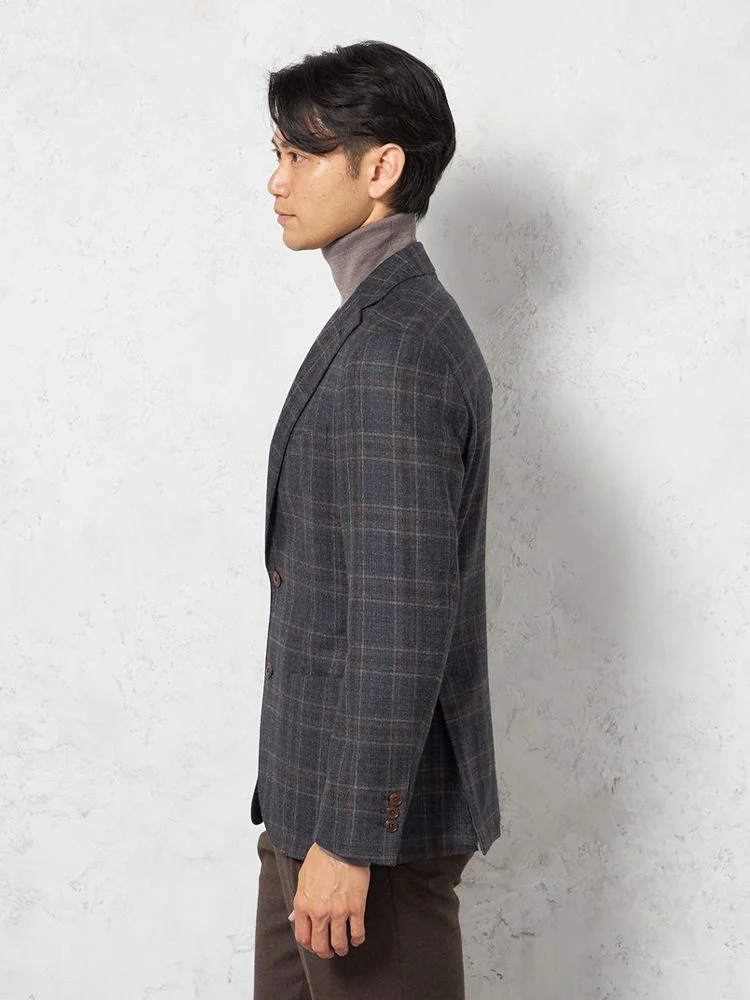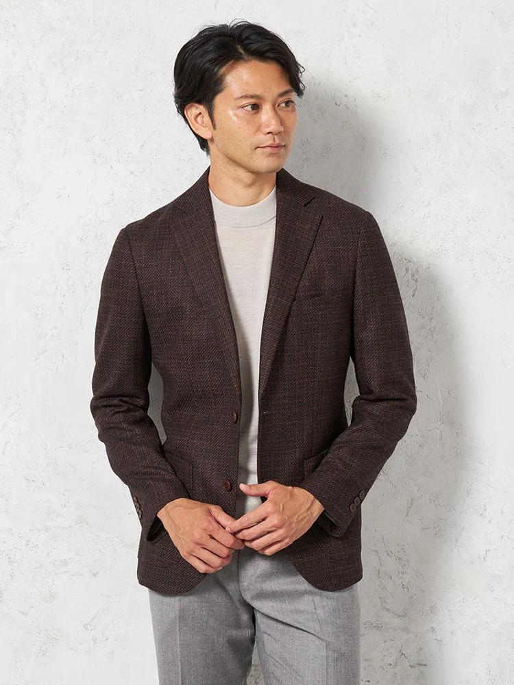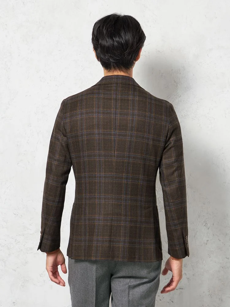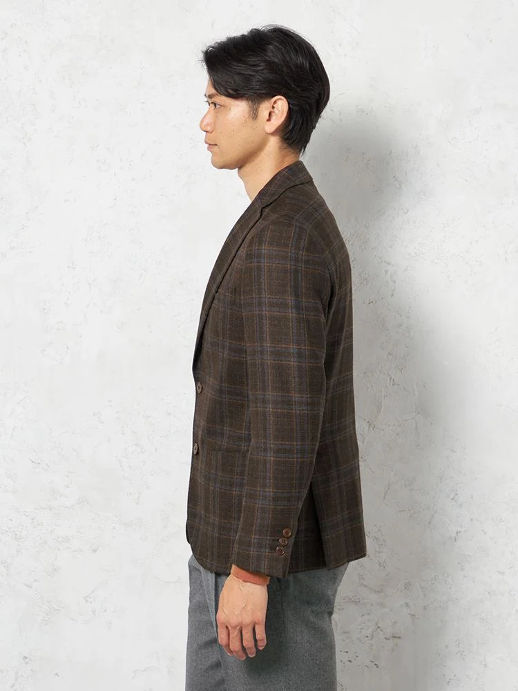 【ウール100%】ジャケット 2つボタン【REDAインポート生地】 チェック リッケンバッカー 秋冬(D.ブラウン)
