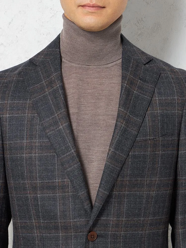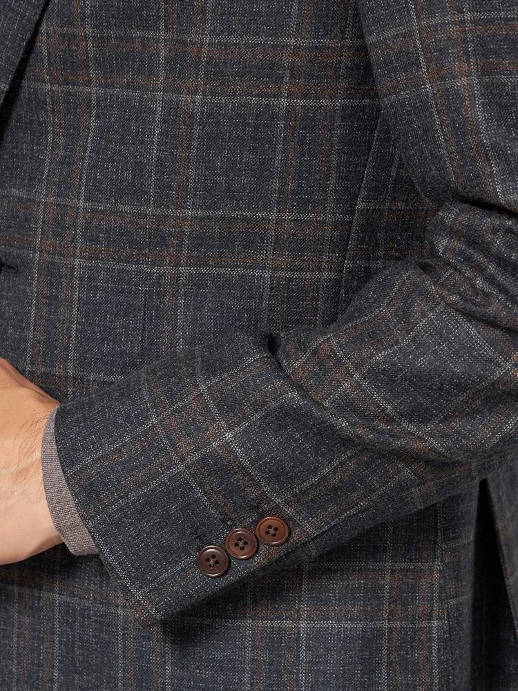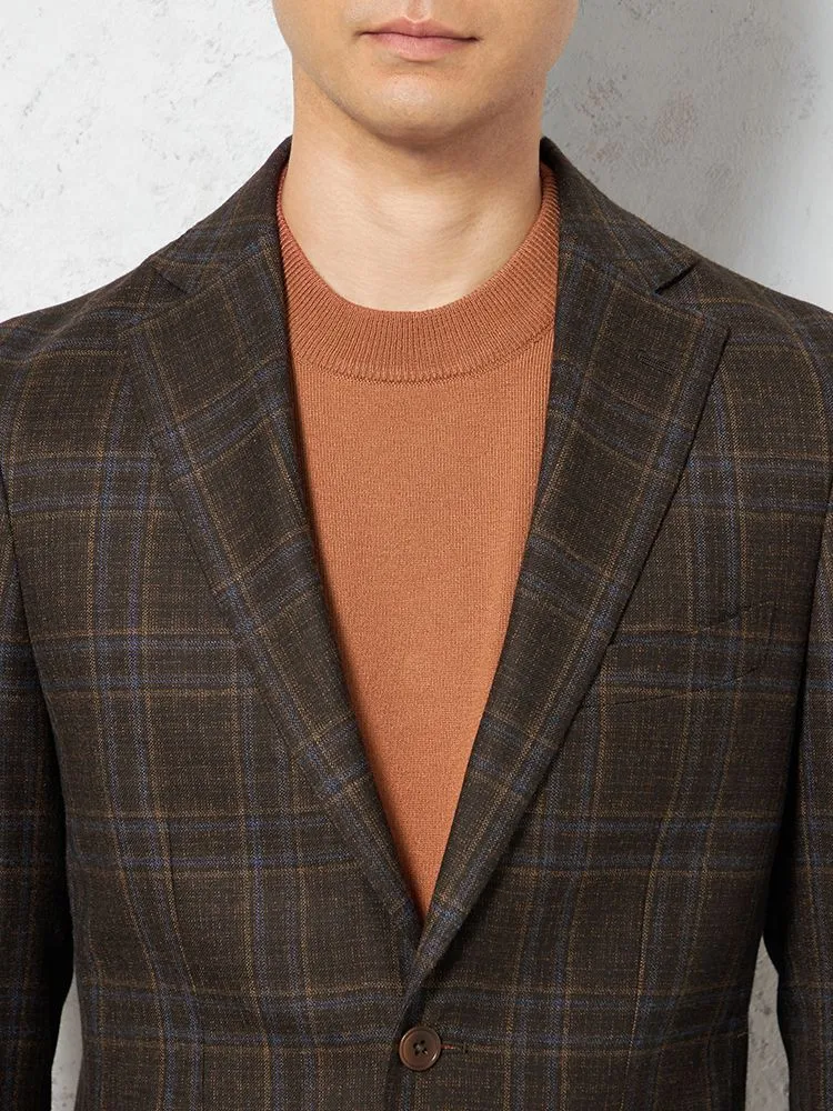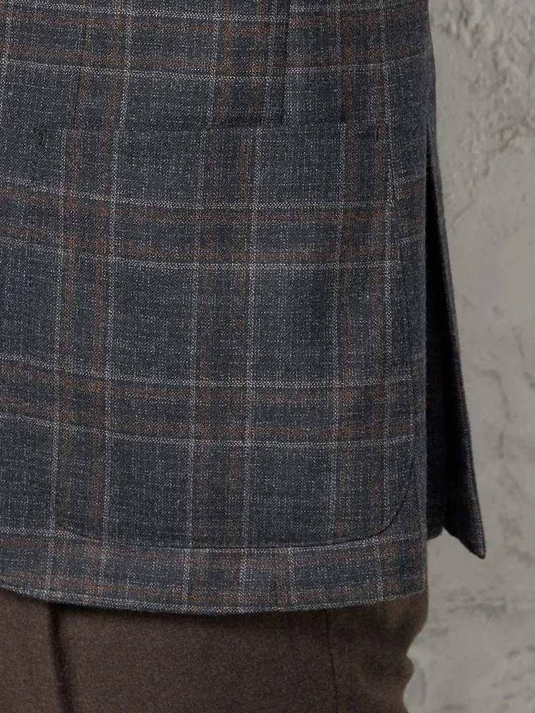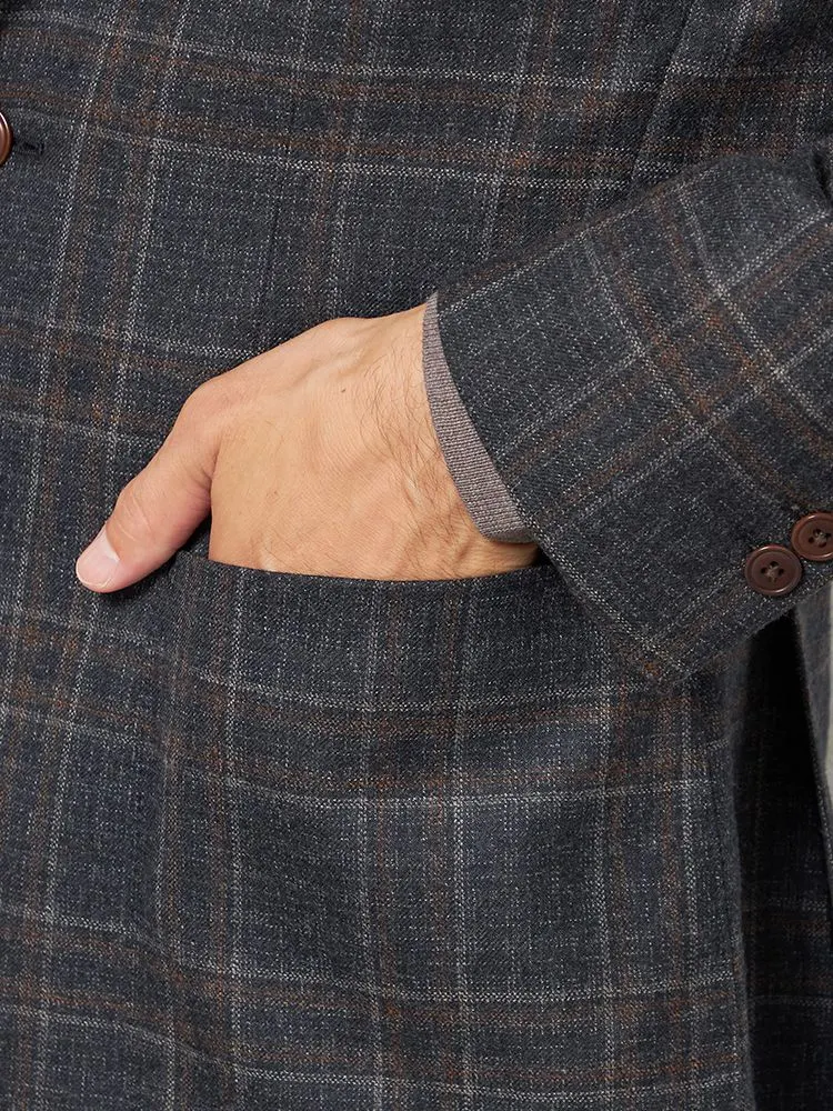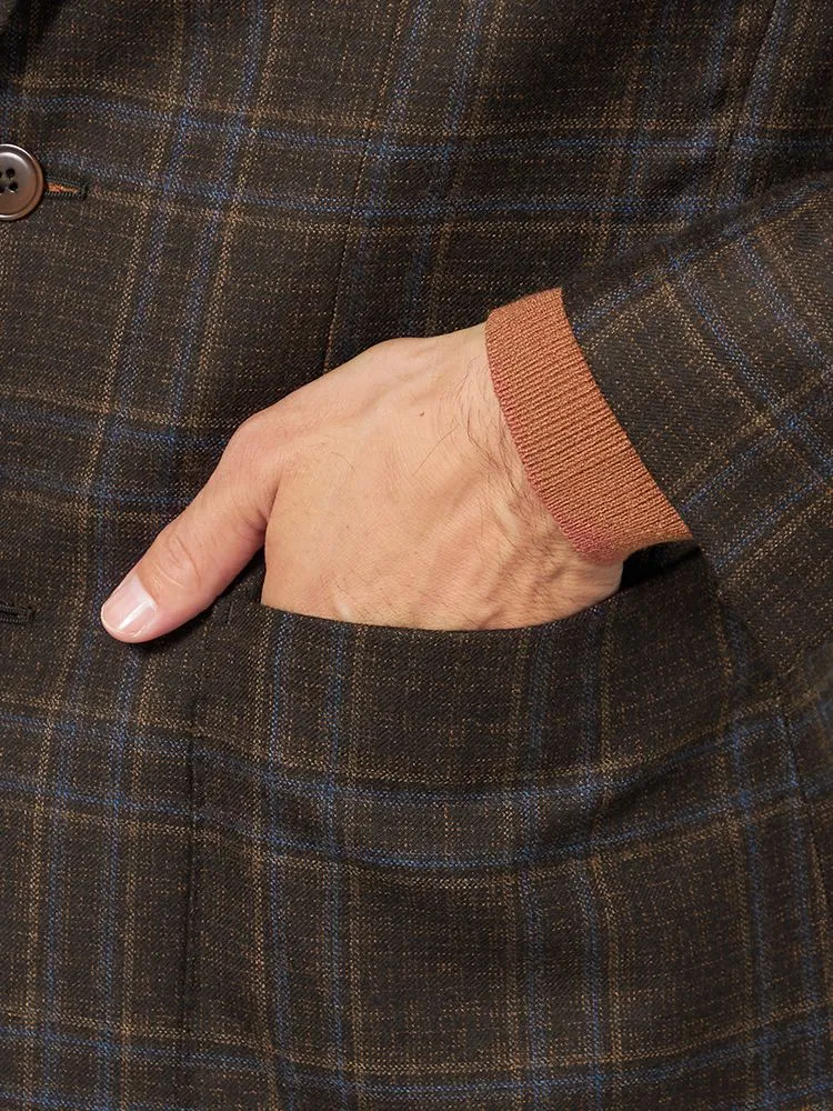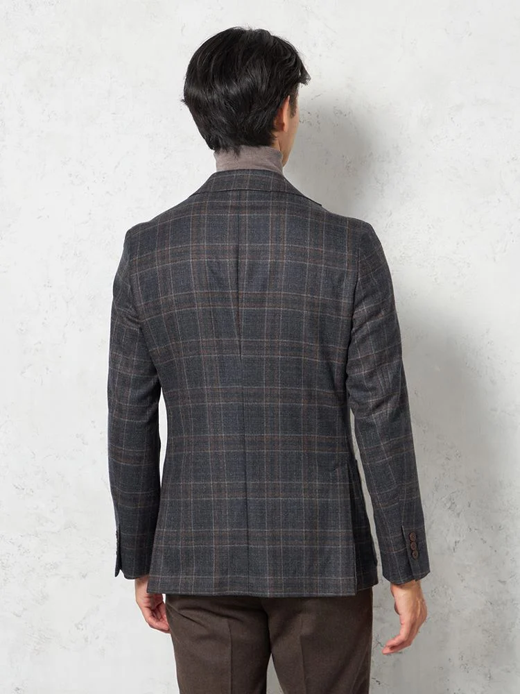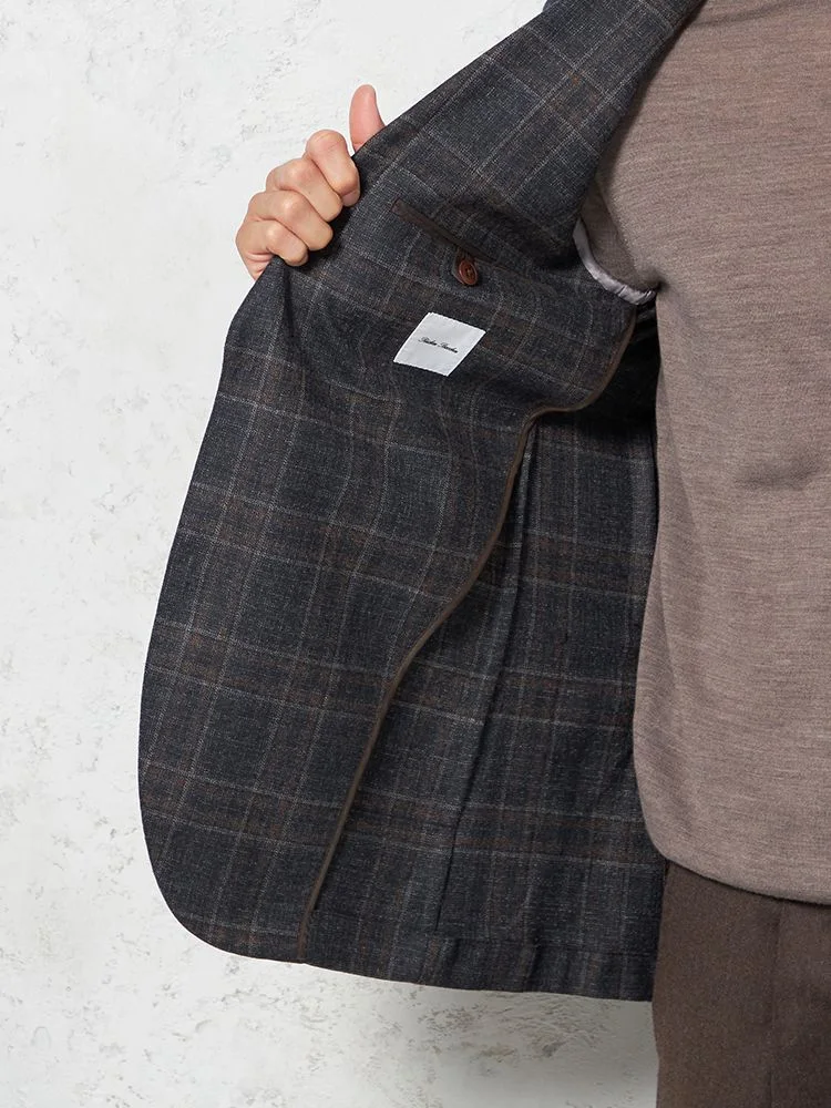 【ウール100%】ジャケット 2つボタン【REDAインポート生地】 チェック リッケンバッカー 秋冬(D.ブラウン)