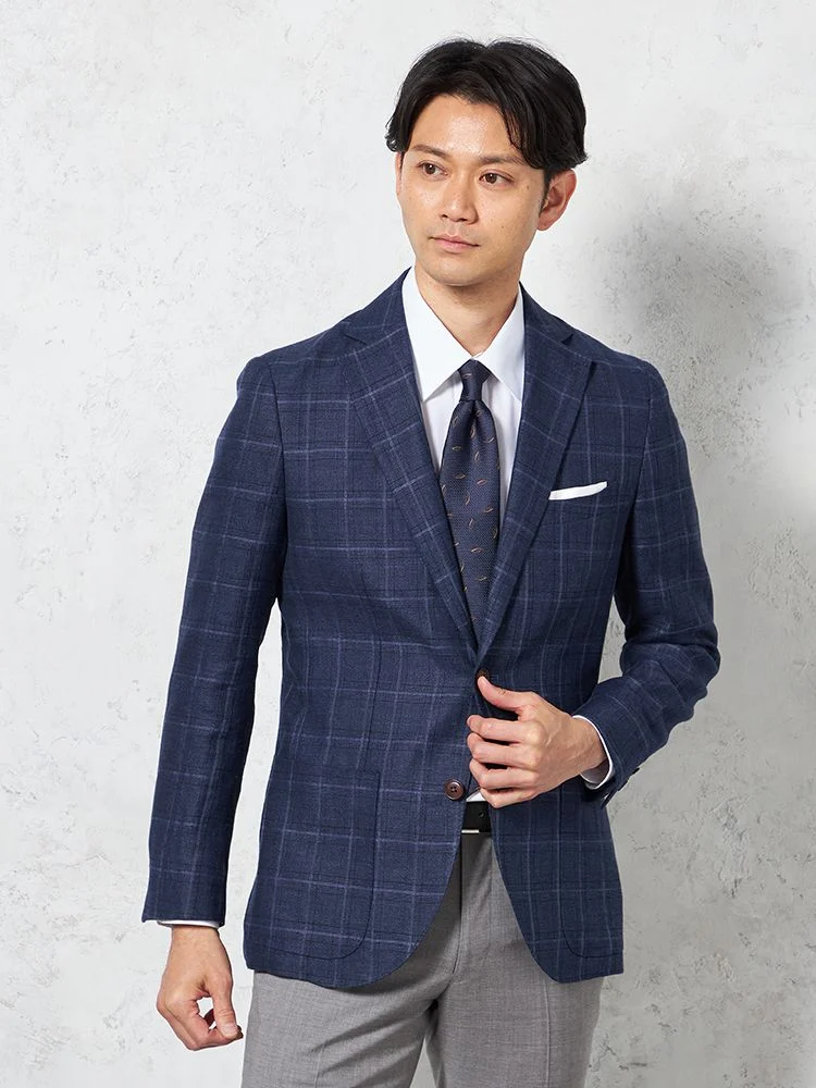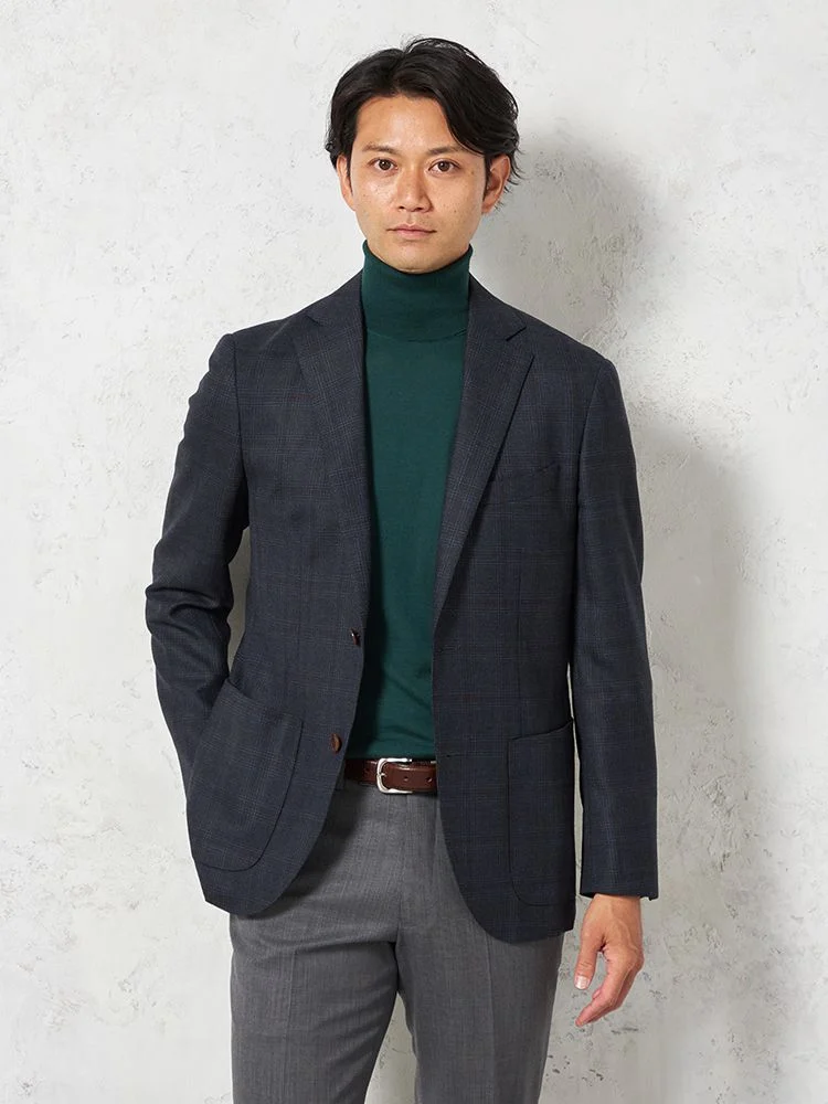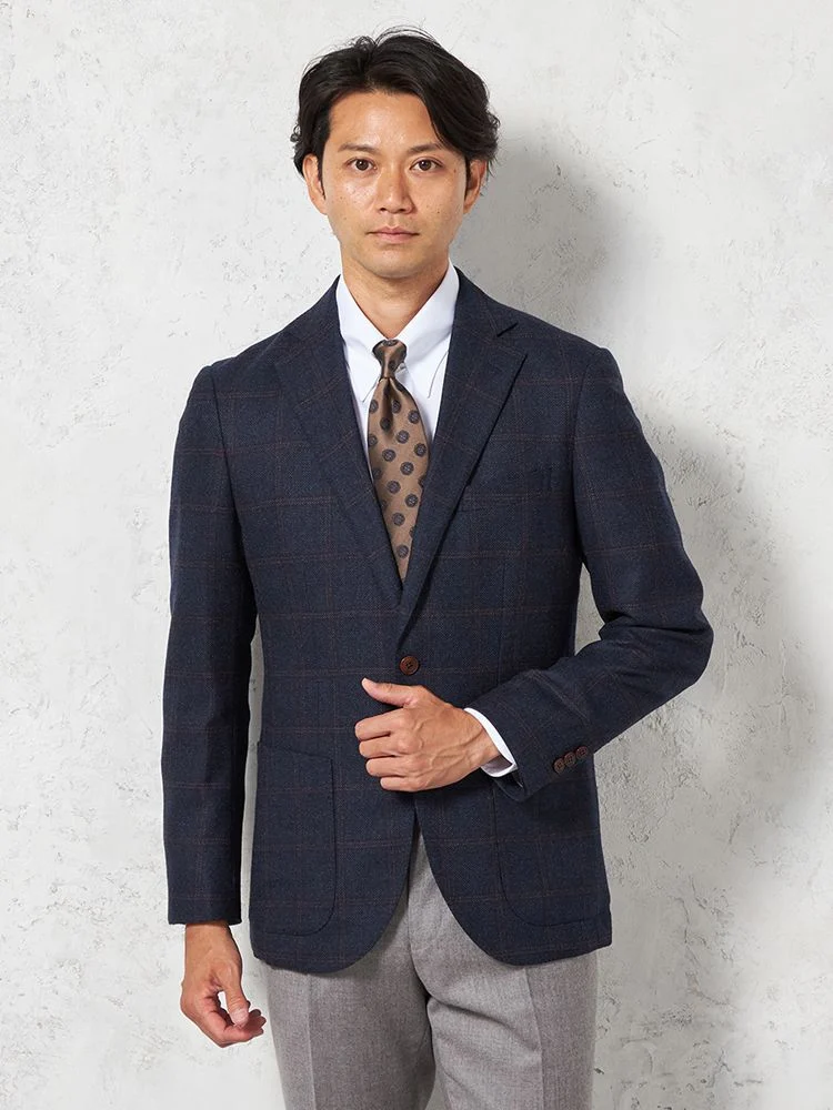 2つボタンのデザインで、クラシックなスタイルを演出。落ち着きと品のあるアイテムです。