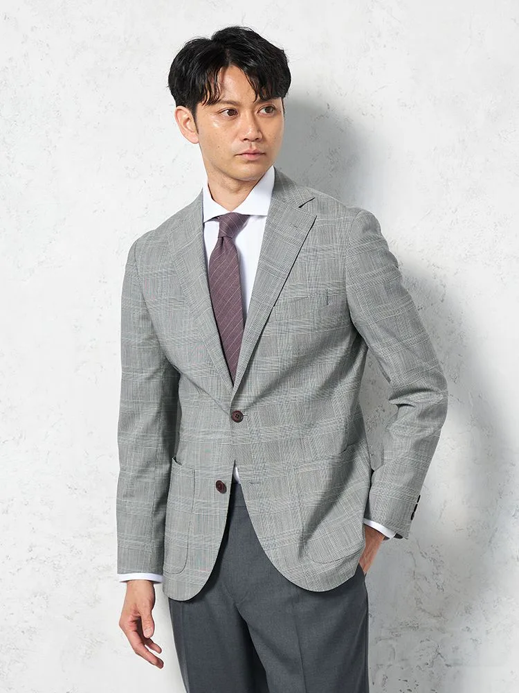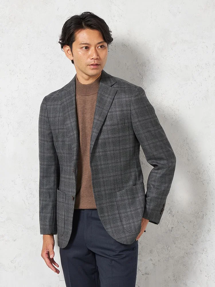 【ウール100%】ジャケット2つボタン【REDA】イタリアインポート素材軽量仕立てチェックグレーRUCKENBACCHAR秋冬