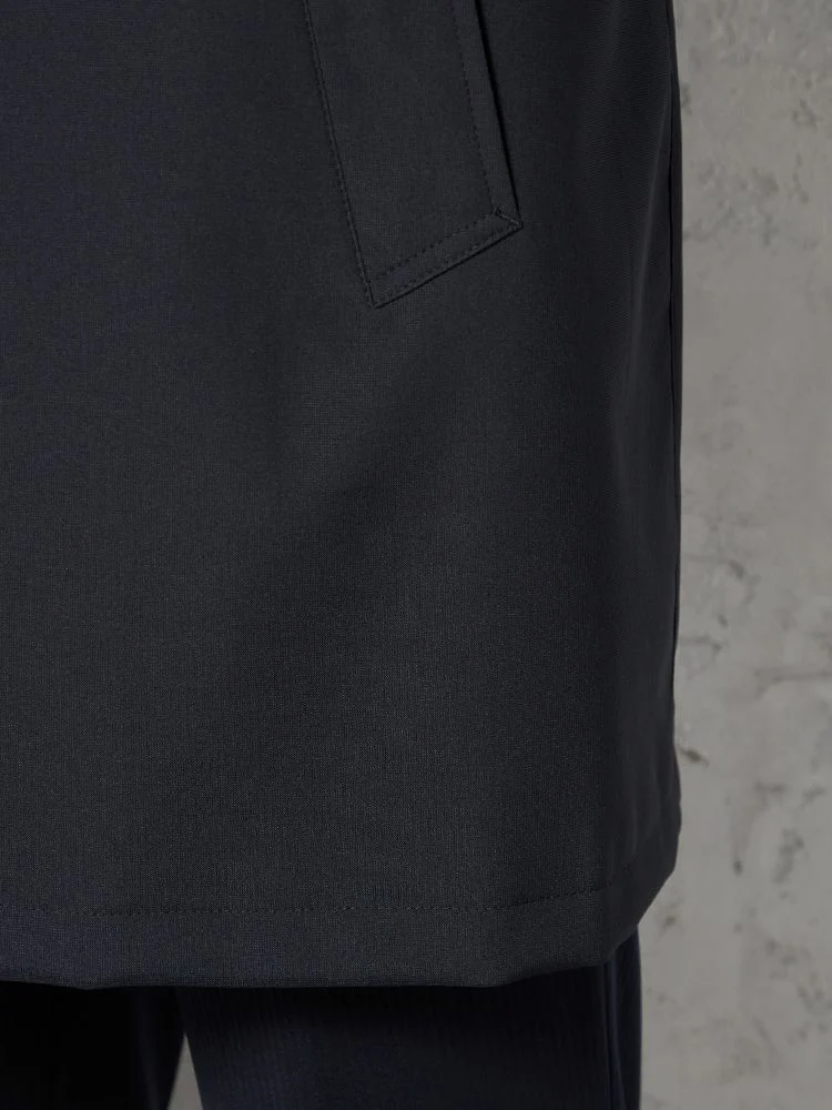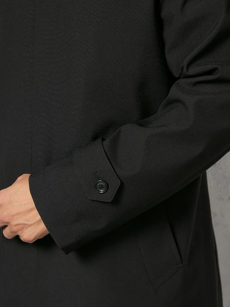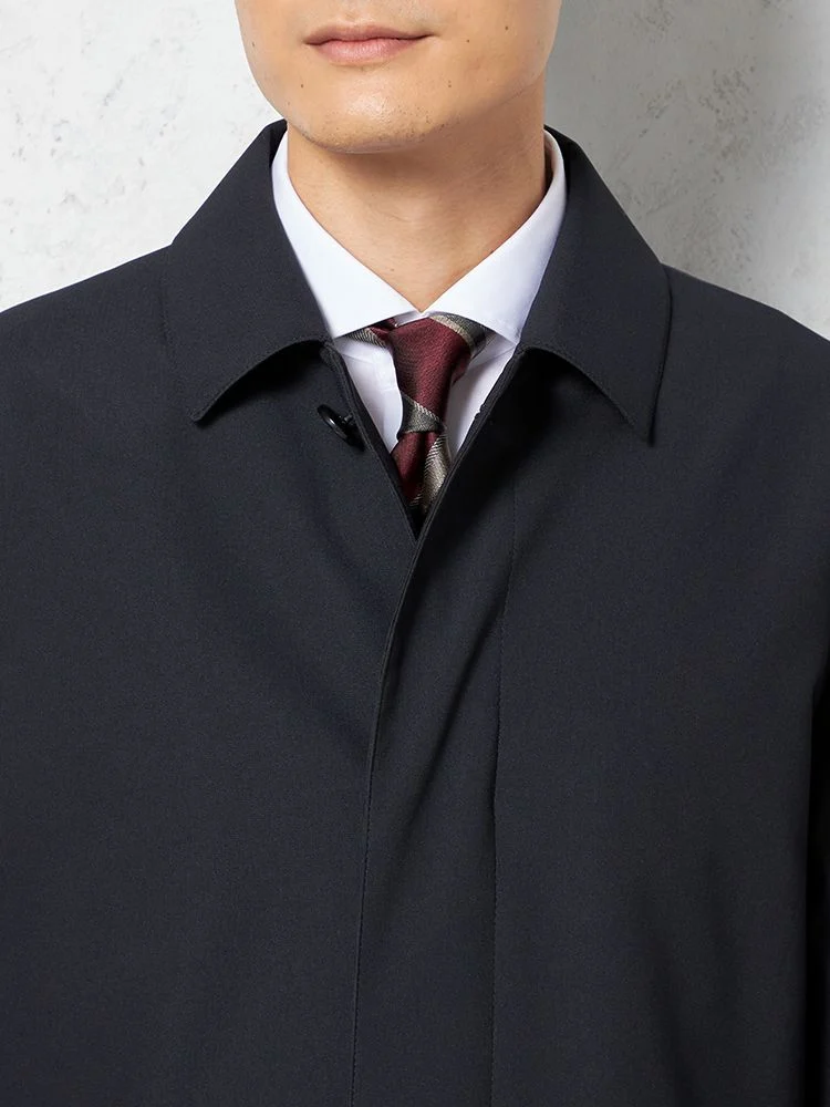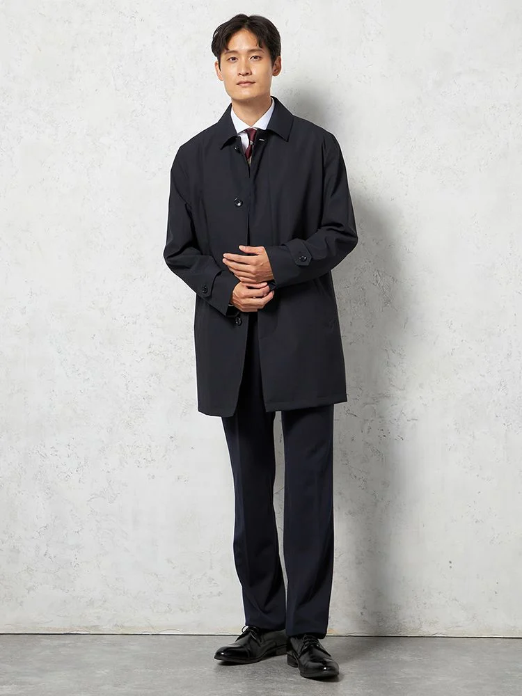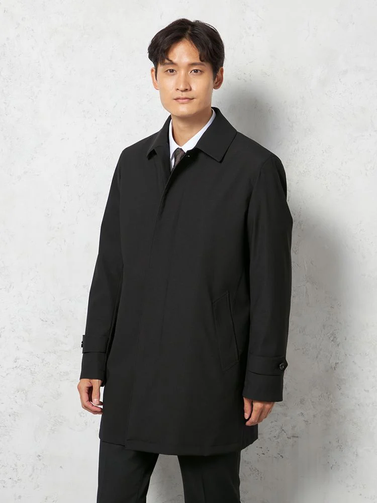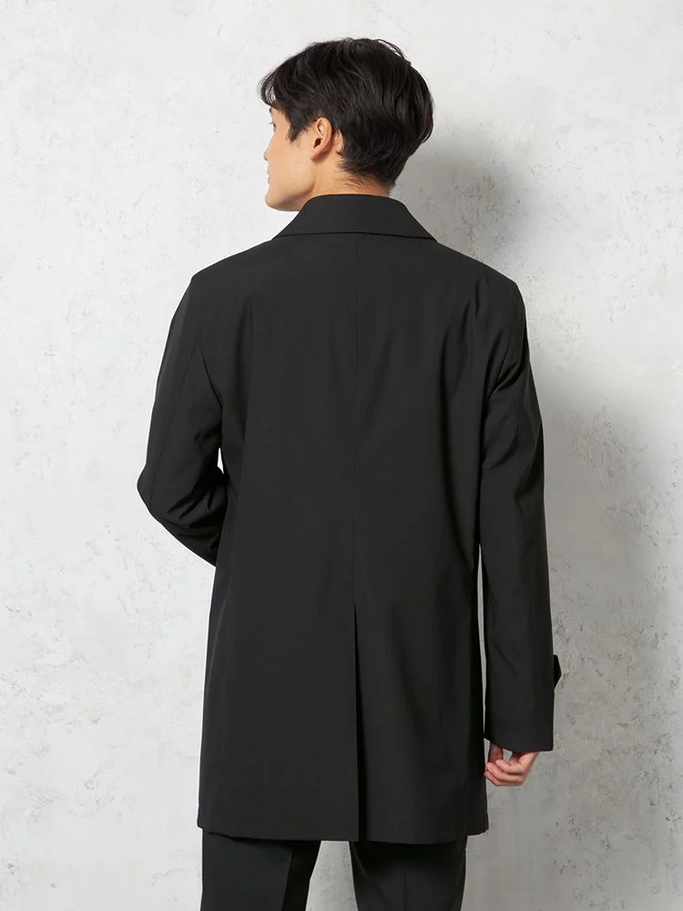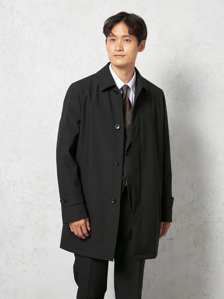 【撥水加工】コートセミトレンチ表地ストレッチ防風ライナー付き織柄無地nero秋冬