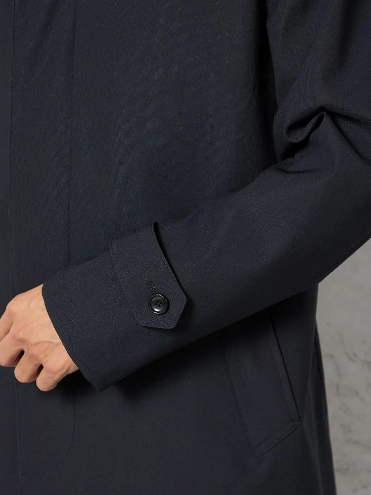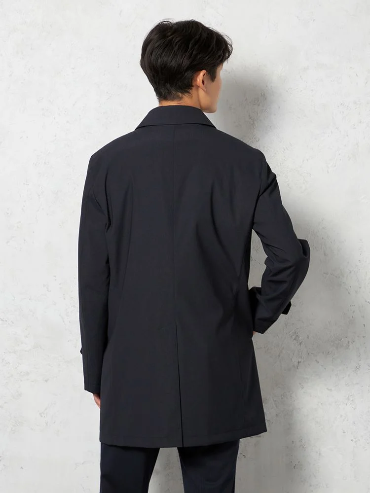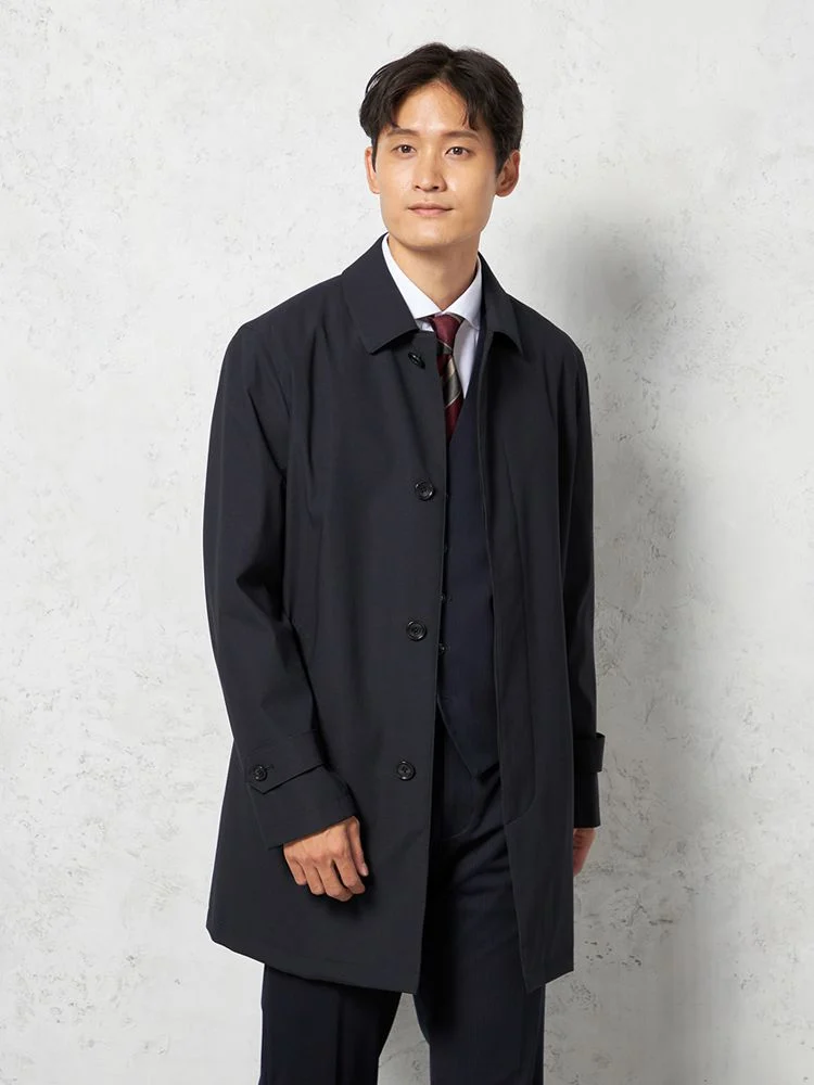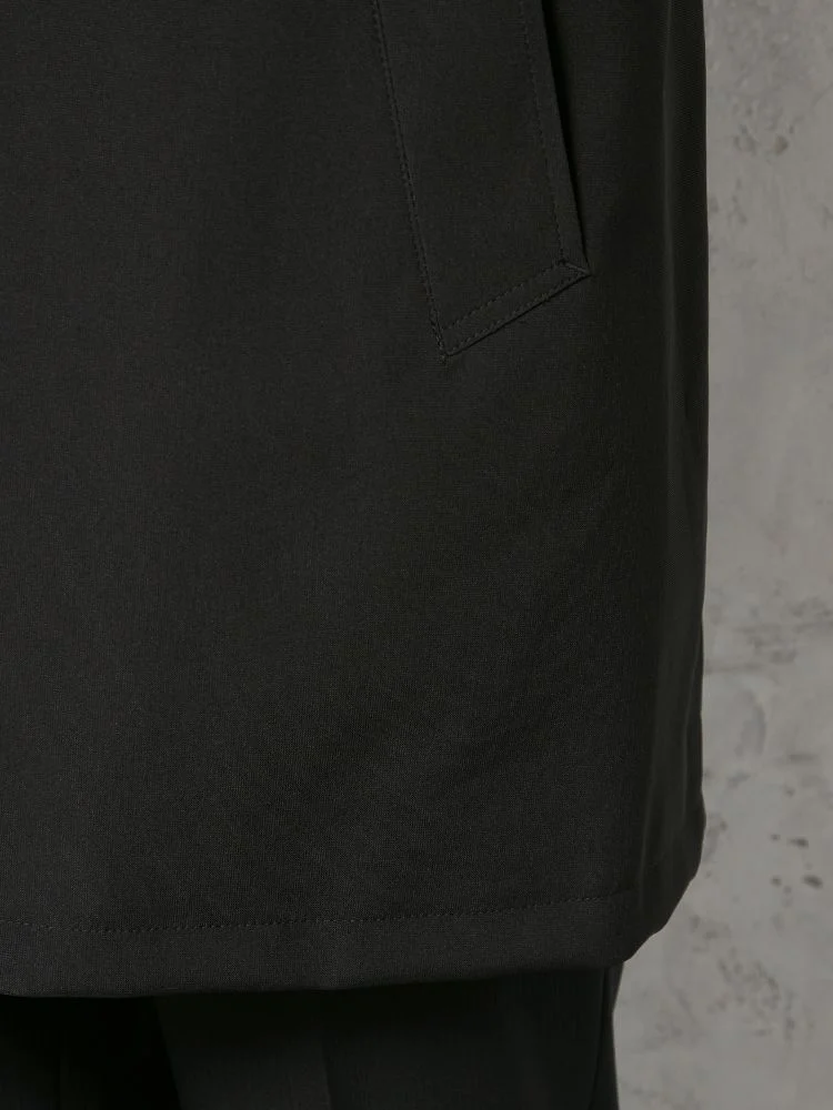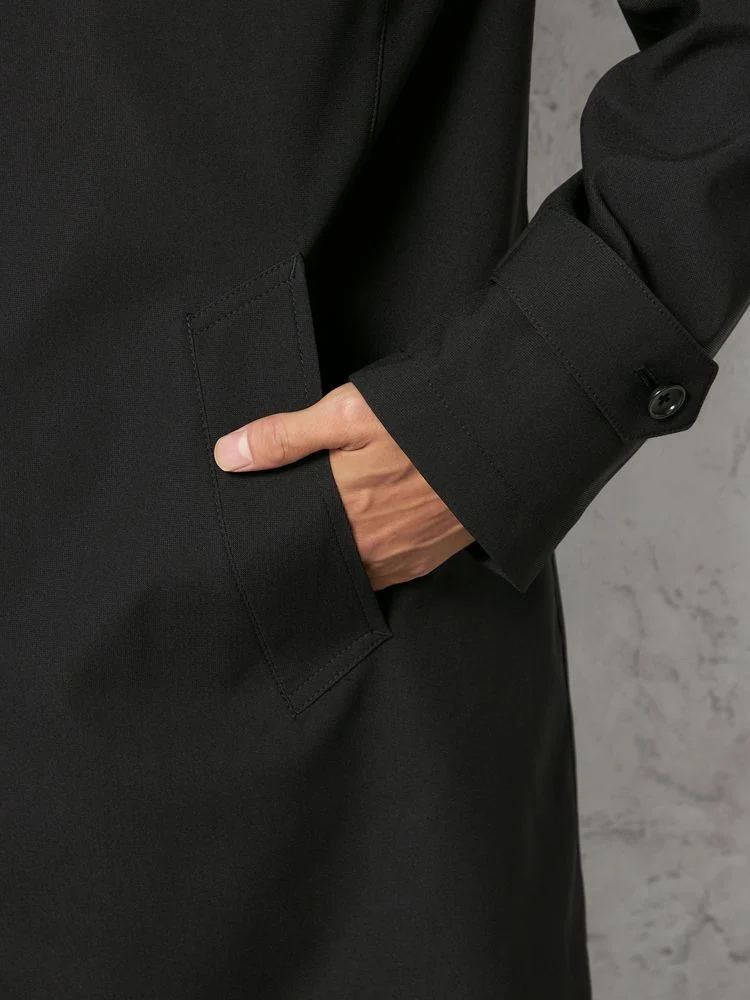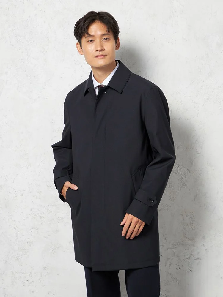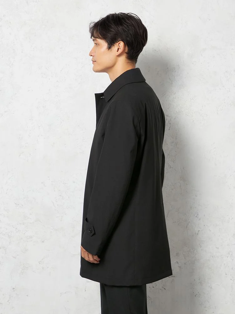 【撥水加工】コートセミトレンチ表地ストレッチ防風ライナー付き織柄無地nero秋冬