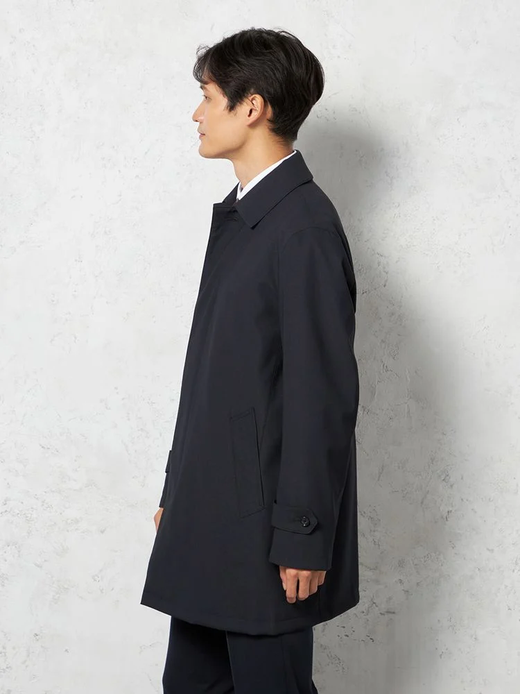 【軽量】ステンカラーコートダウンライナー付き撥水ストレッチ無地nero秋冬